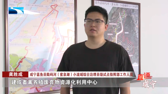 咸宁嘉鱼县陆码河(蜜泉湖)小流域综合治理县级试点指挥部工作人员 龚胜成:“嘉鱼县实施河湖排口整治、蜜泉湖集中连片、养殖池塘标准化改造和尾水治理、农业面源污染治理等项目。建成畜禽养殖废弃物资源化利用中心和林果产业水肥一体化设施设备,片区养殖尾水水质达到二级排放标准。”