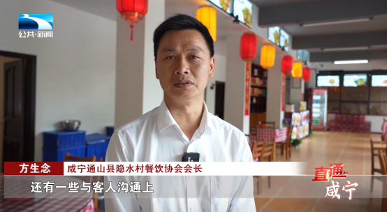 咸宁通山县隐水村餐饮从业者 方声钊:“资源整合,你像前段时间我们接了个住宿,我们一家接不下,我们分了几家来接的。”