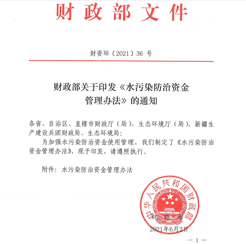 名 称: 关于印发《水污染防治资金管理办法》的通知 发布日期: 2021年09月29日