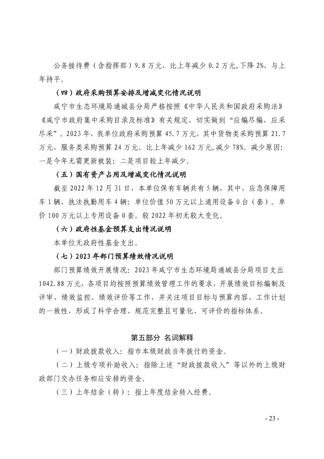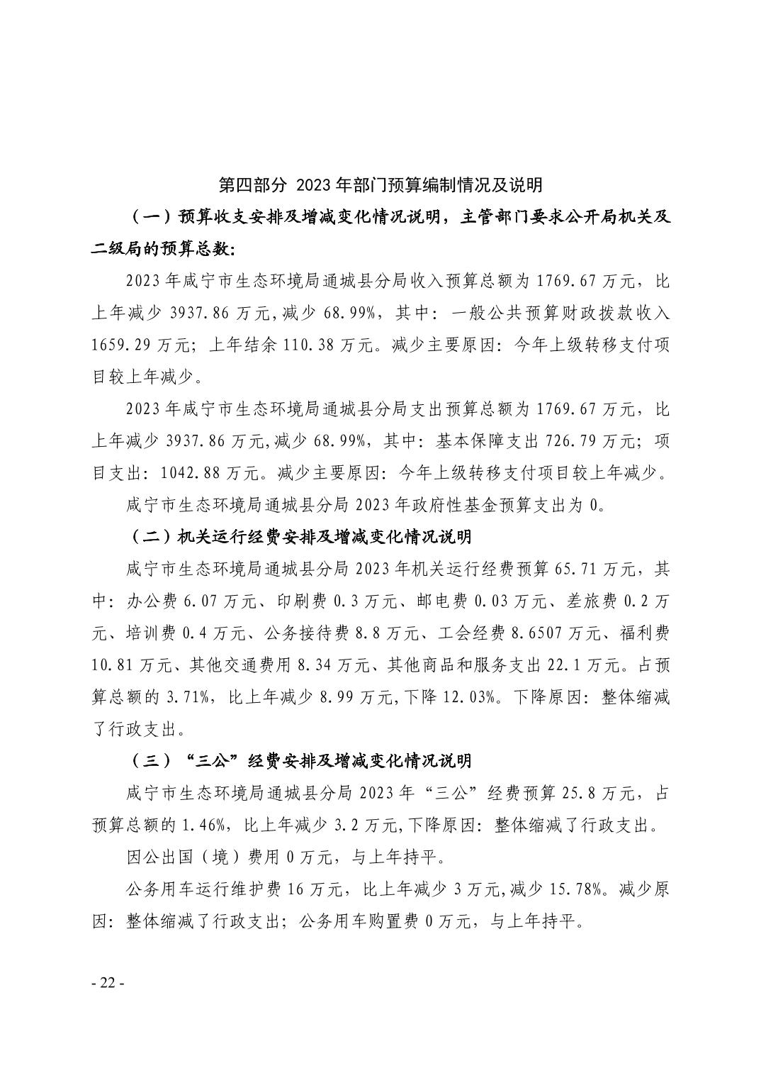 咸宁市生态环境局通城县分局2023年部门预算公开说明