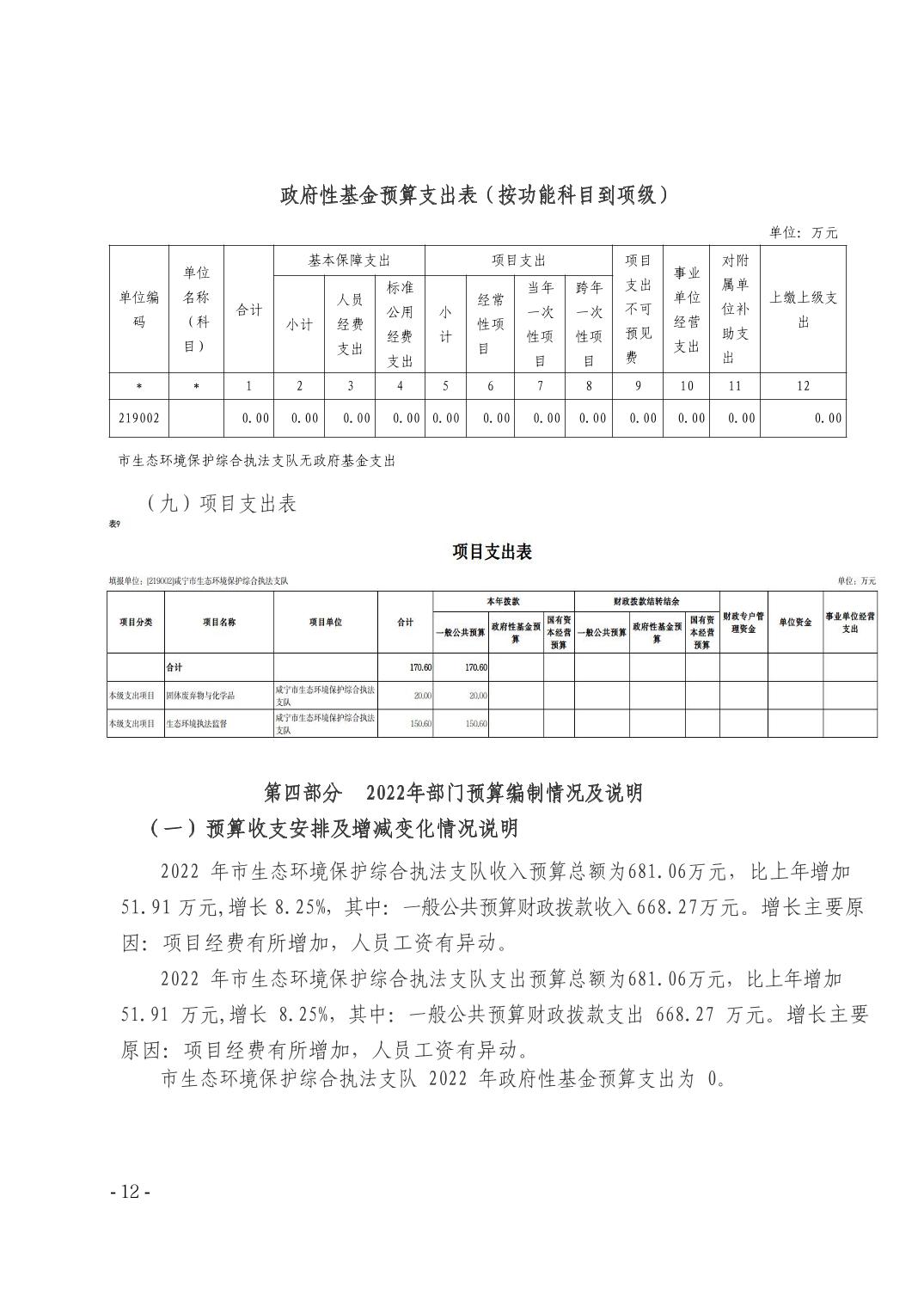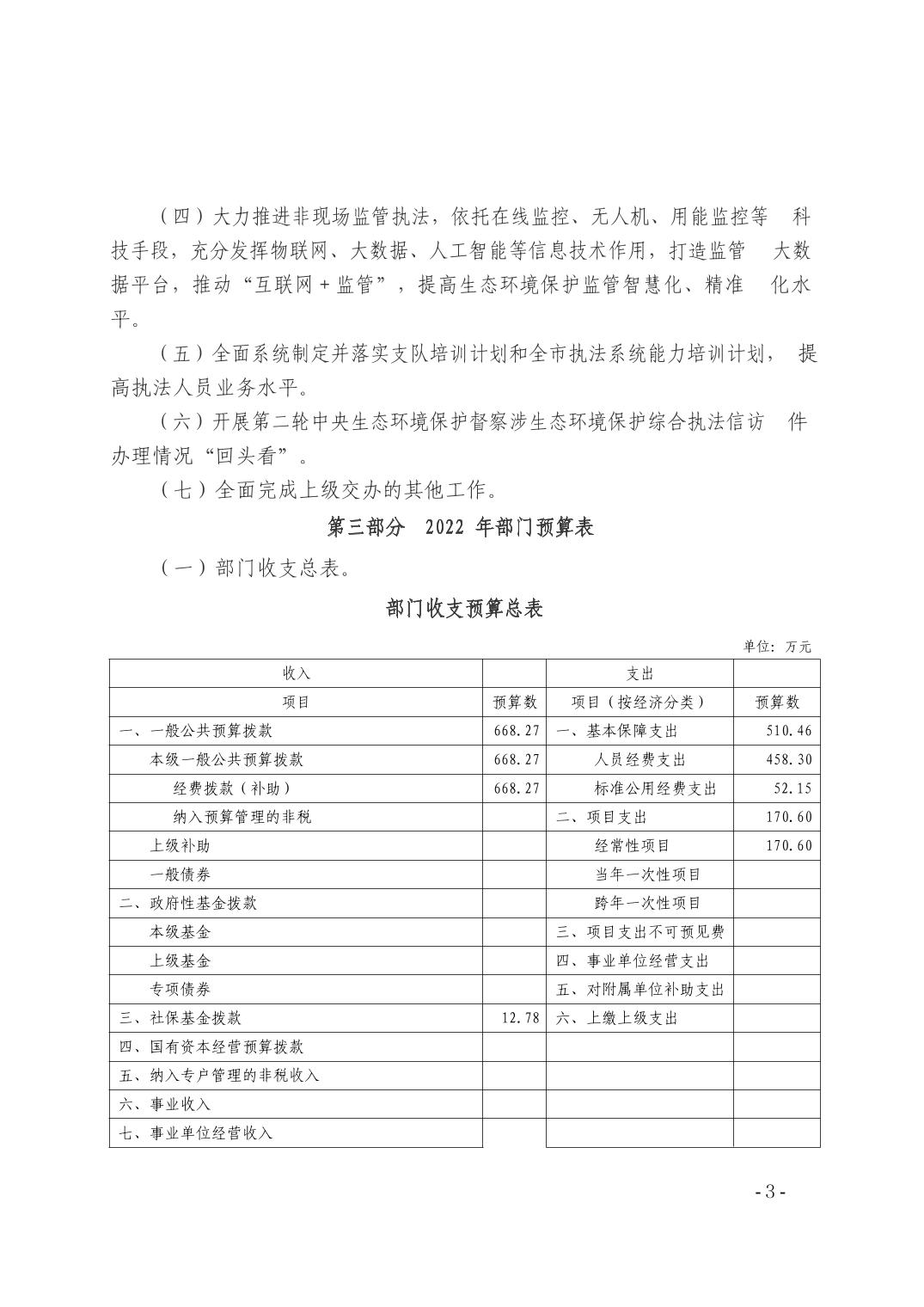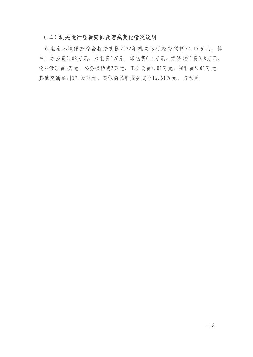 名 称: 市生态环境保护综合执法支队2022年部门预算 发布日期: 2023年08月09日
