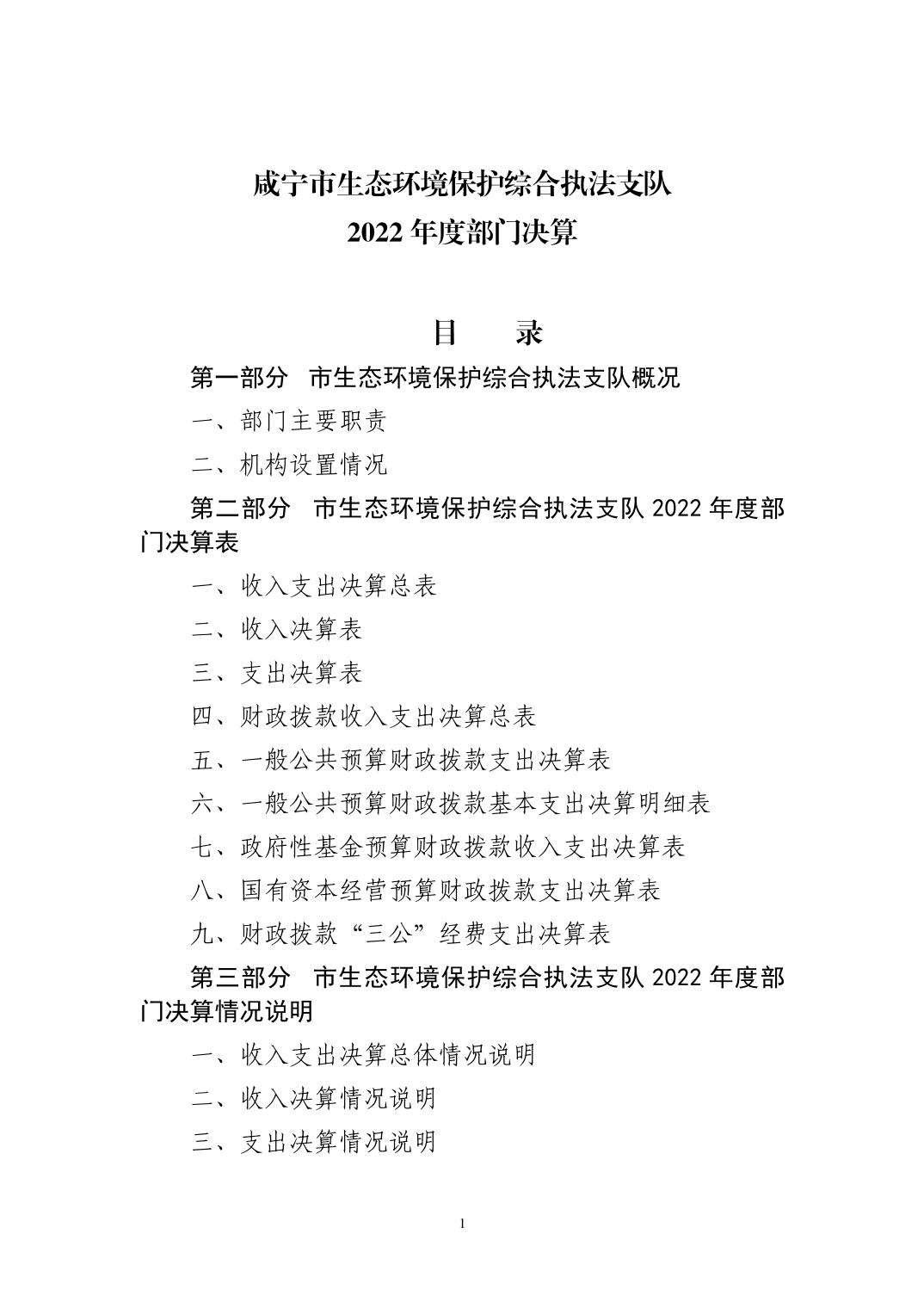 咸宁市生态环境保护综合执法支队2022年度部门决算