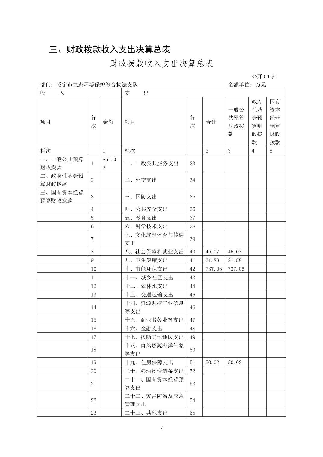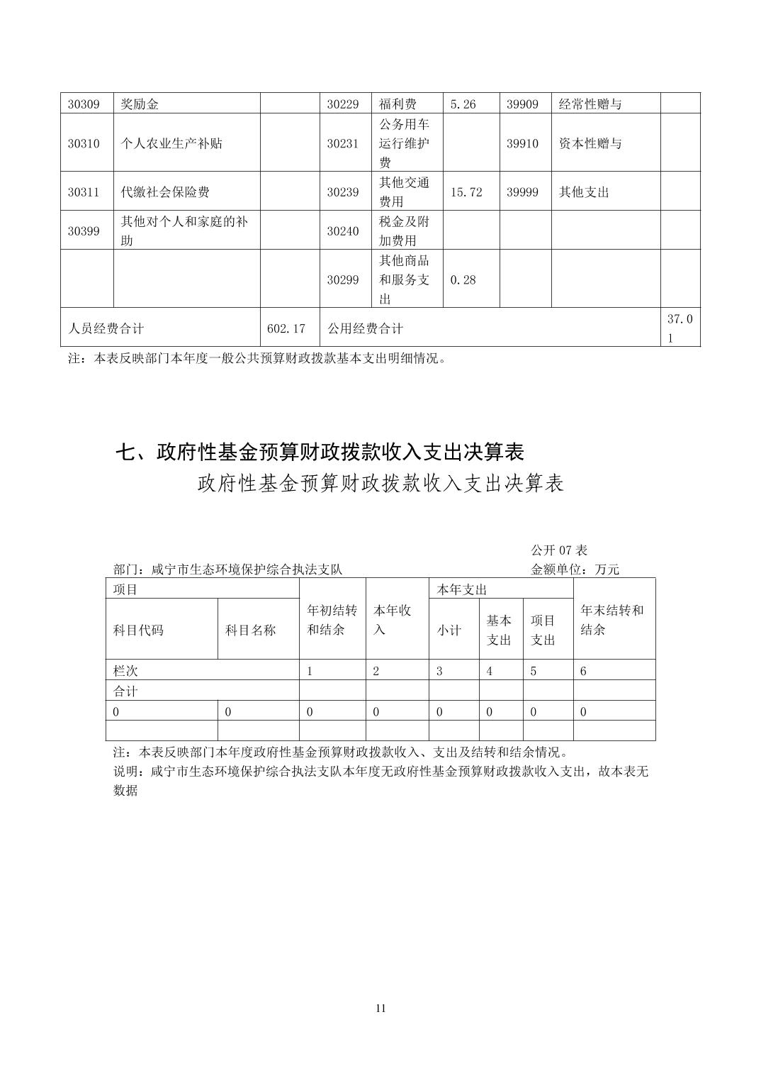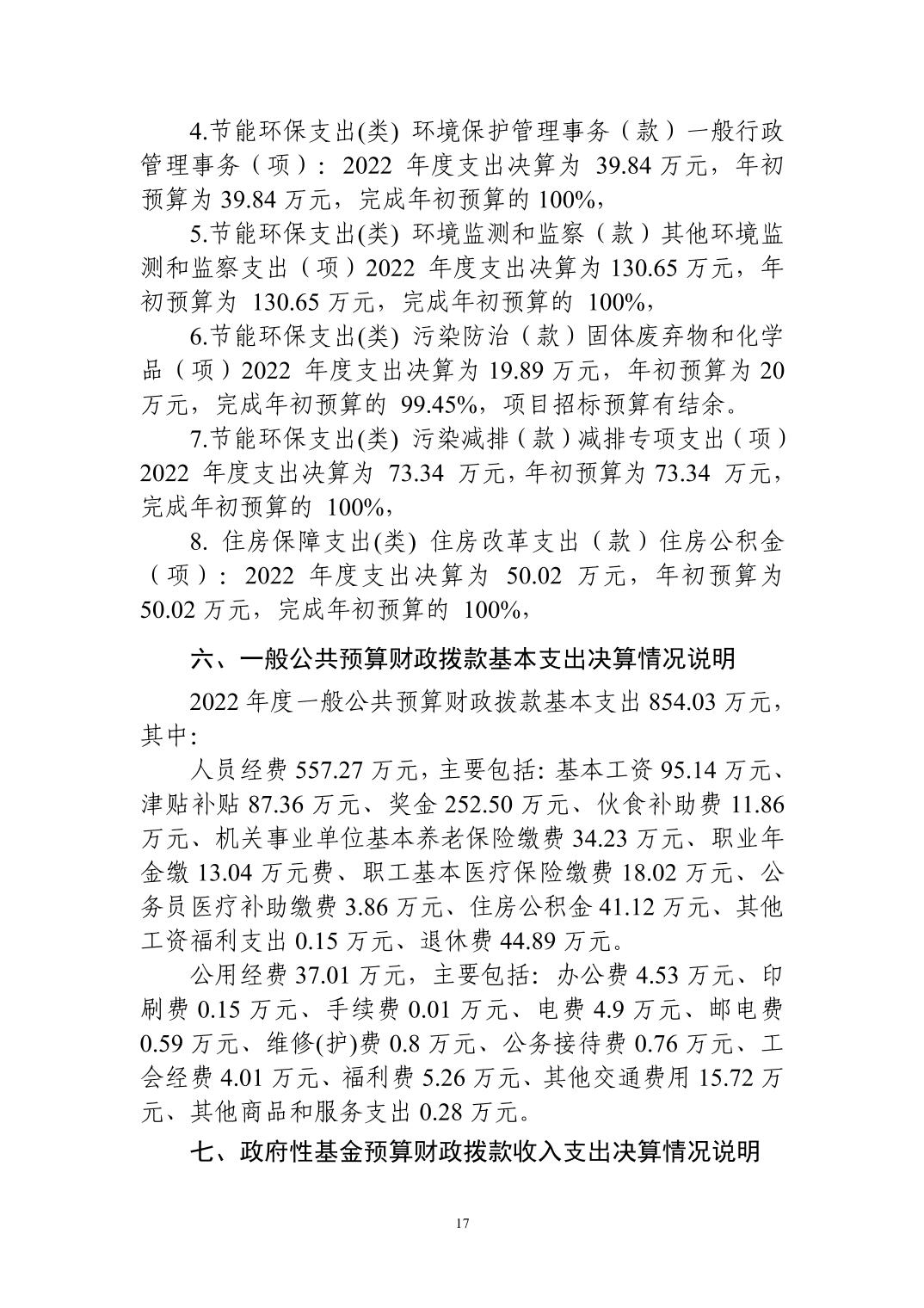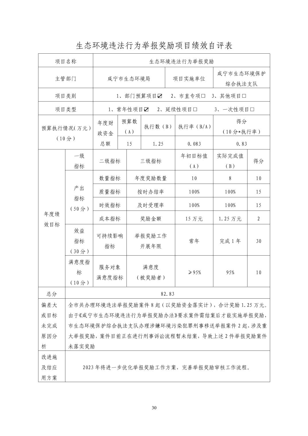 名 称: 咸宁市生态环境保护综合执法支队2022年度部门决算 发布日期: 2023年11月07日