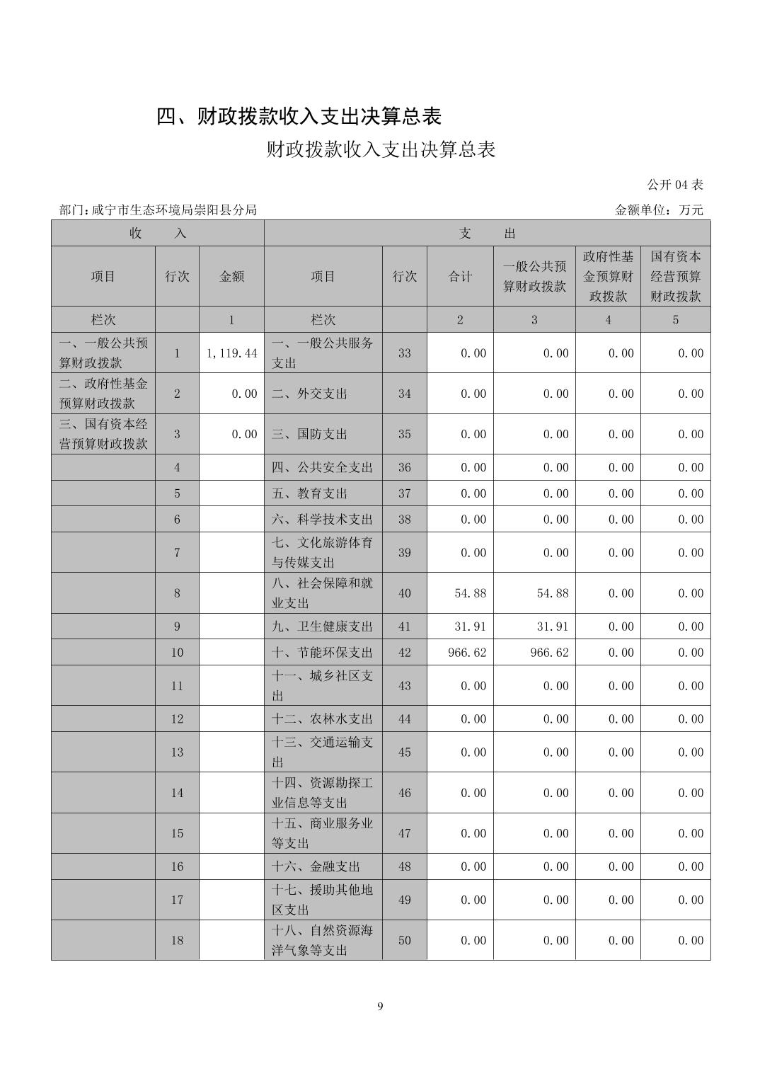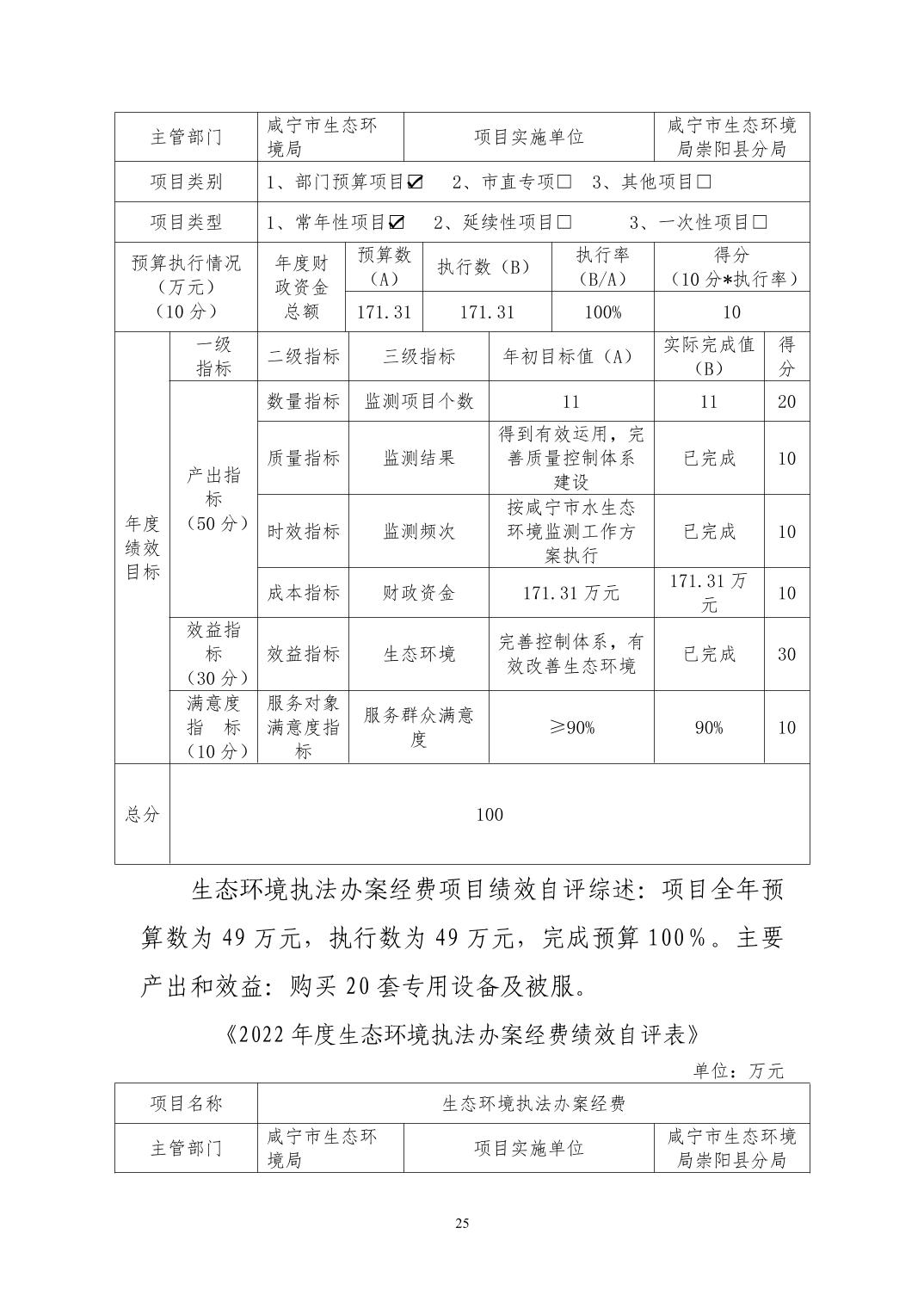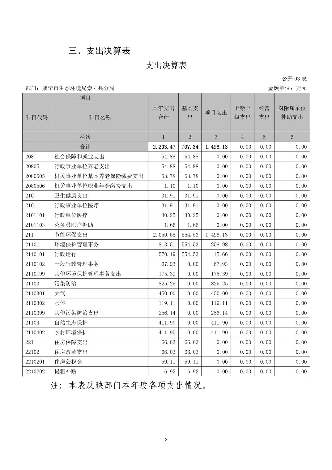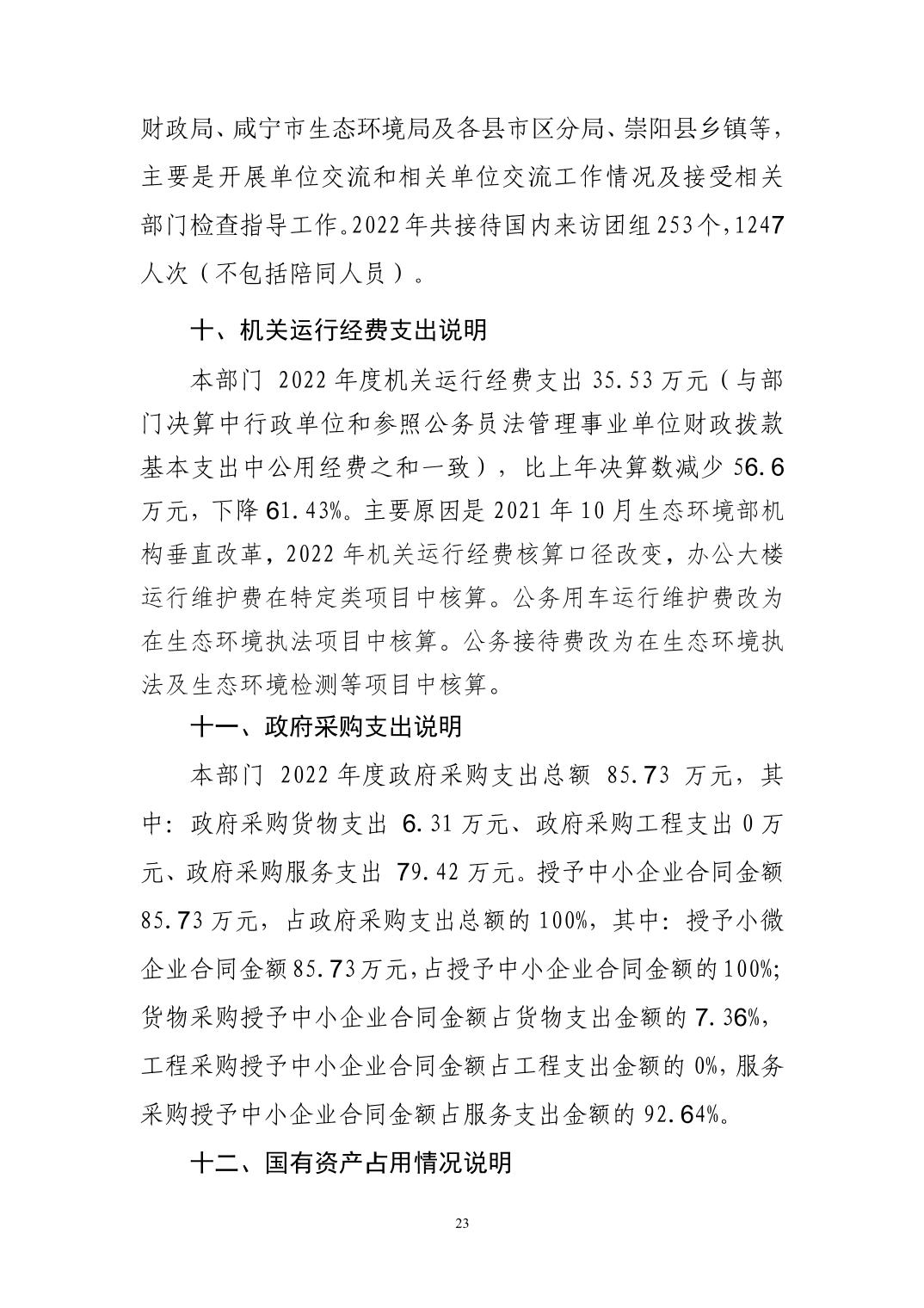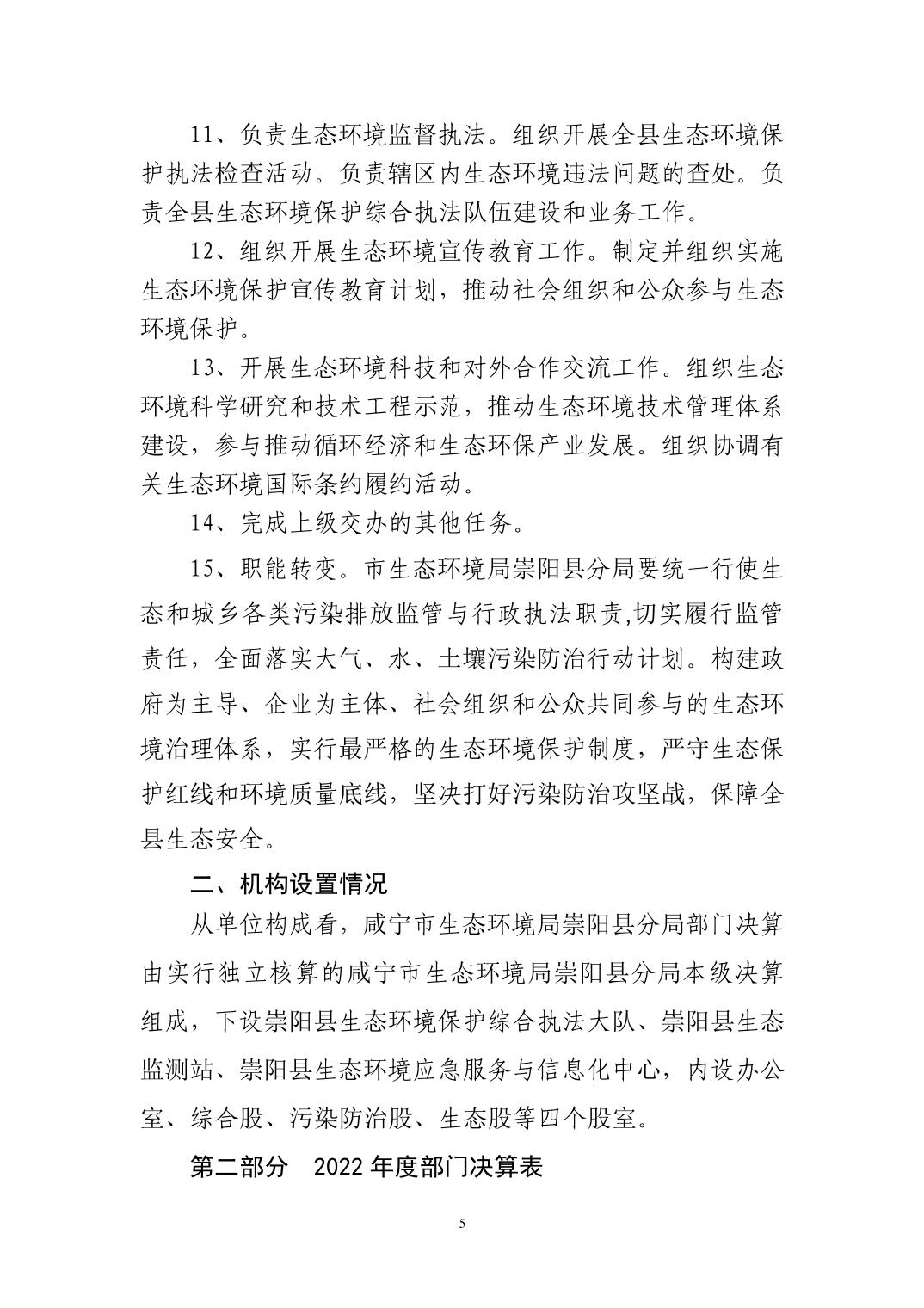 名 称: 咸宁市生态环境局崇阳县分局2022年度部门决算 发布日期: 2023年11月07日