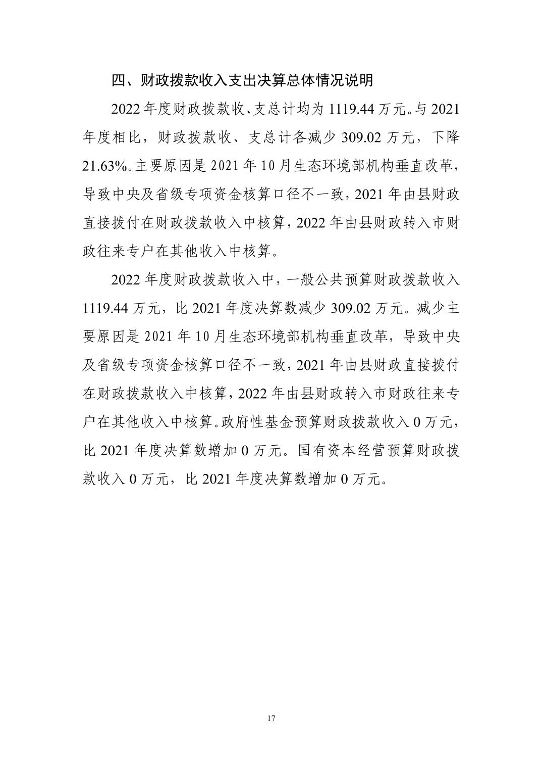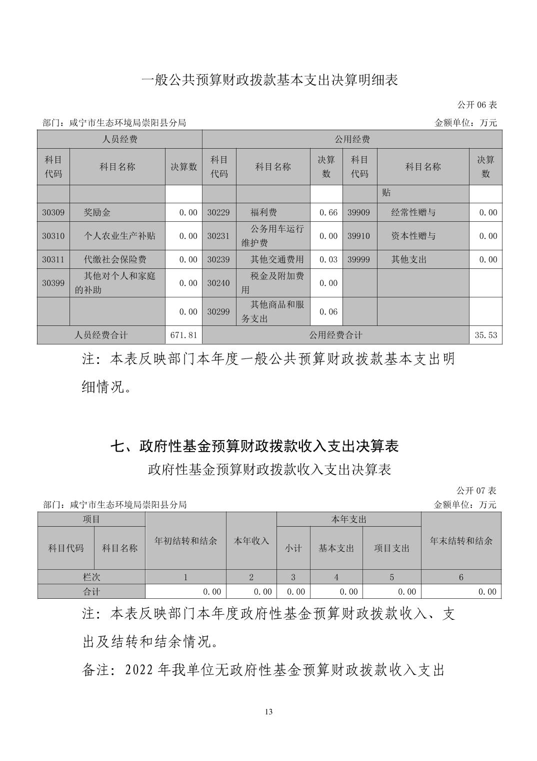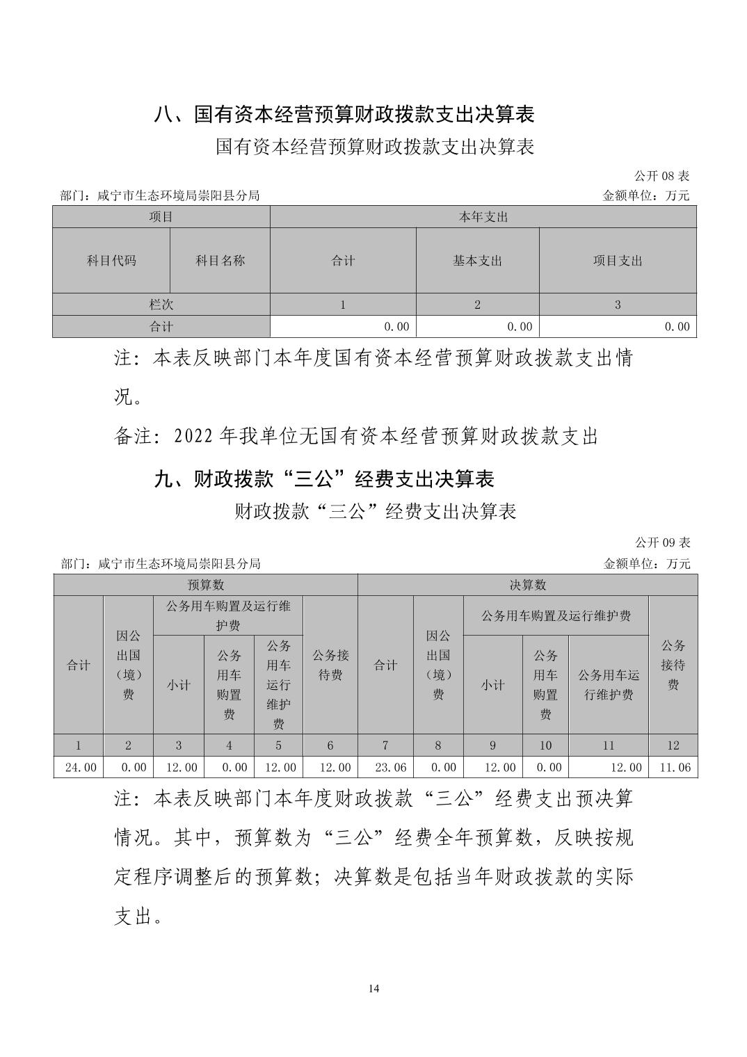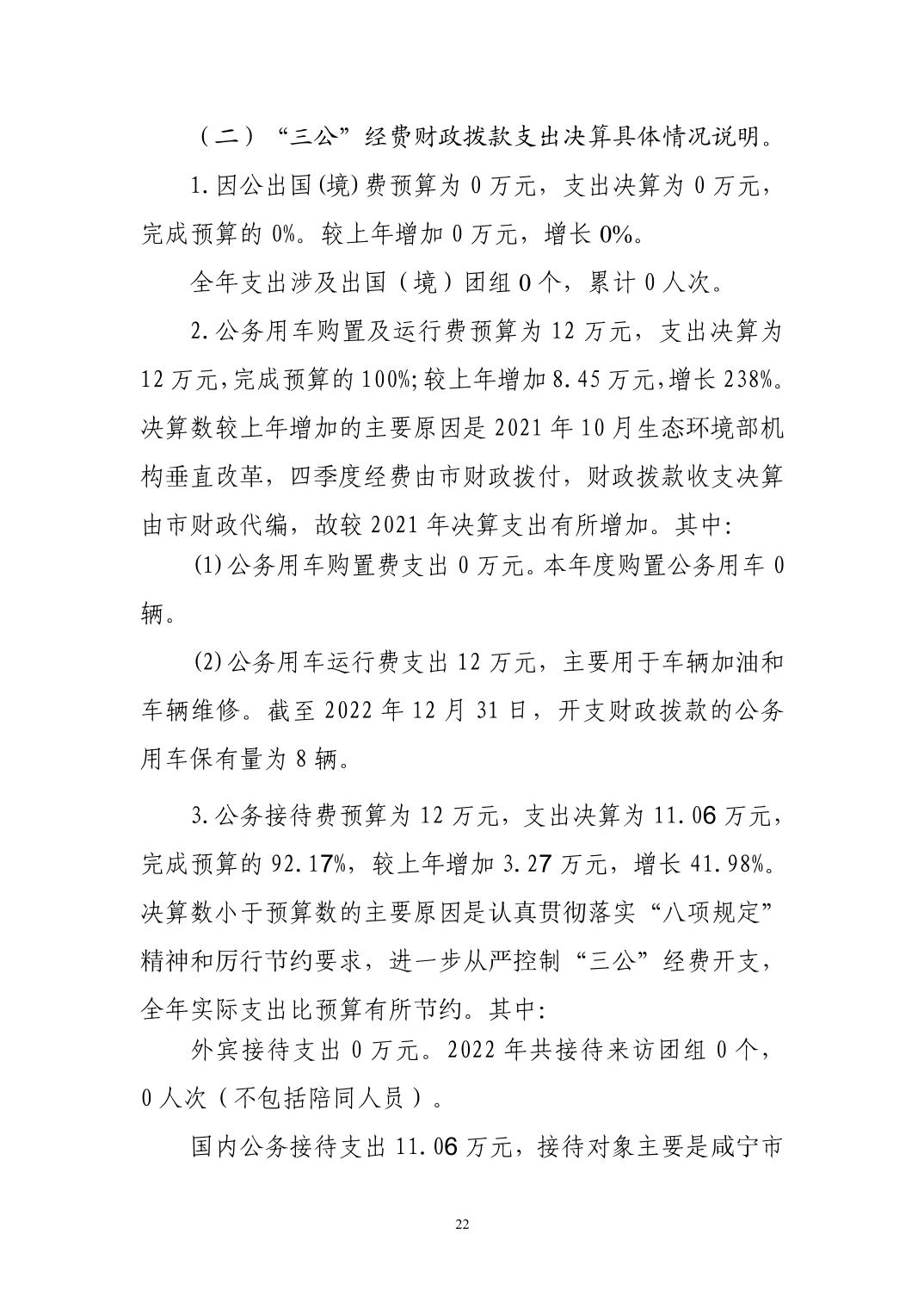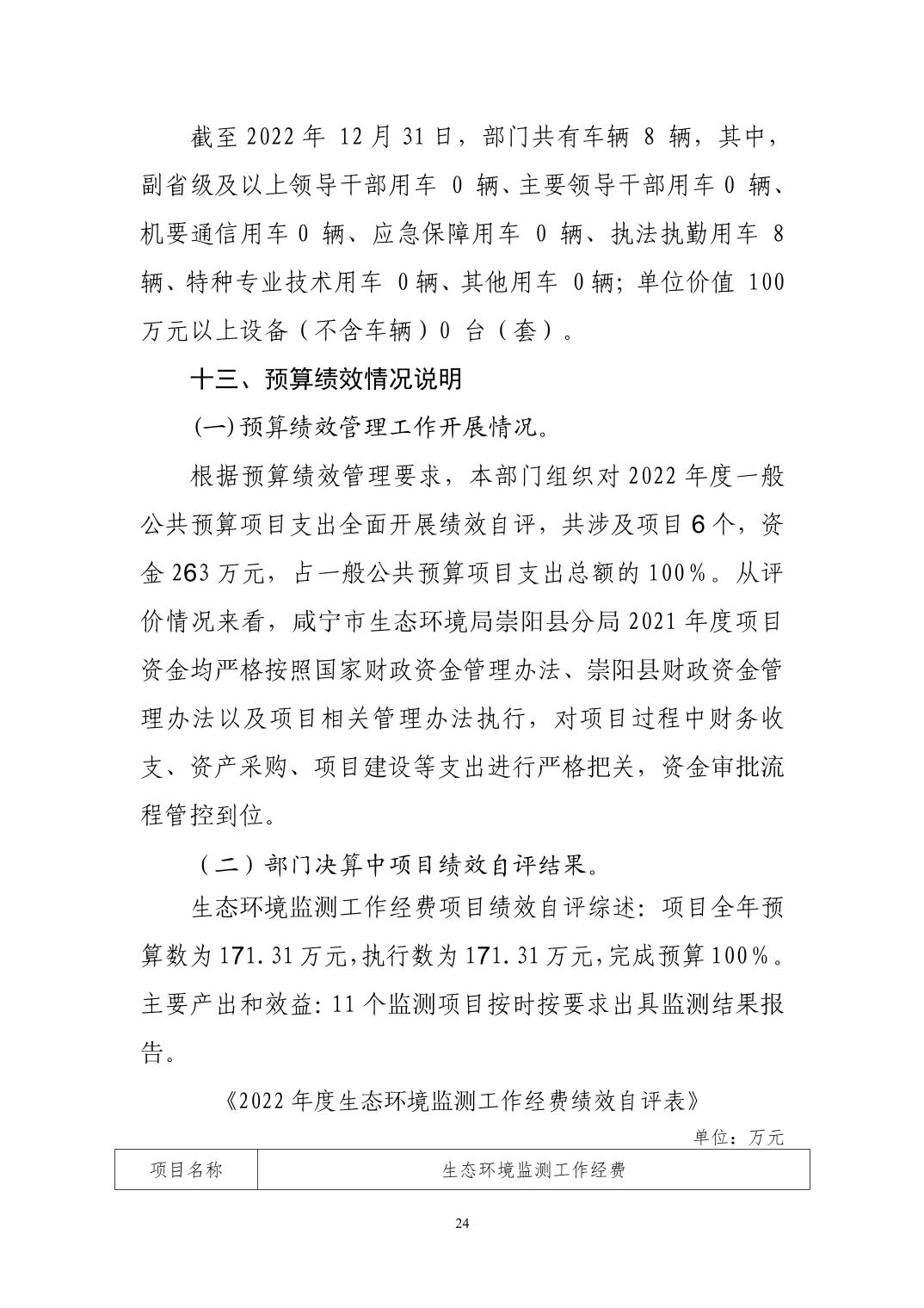 咸宁市生态环境局崇阳县分局2022年度部门决算