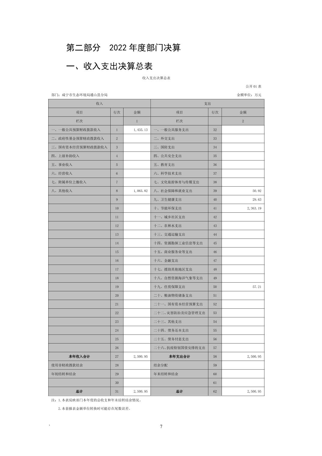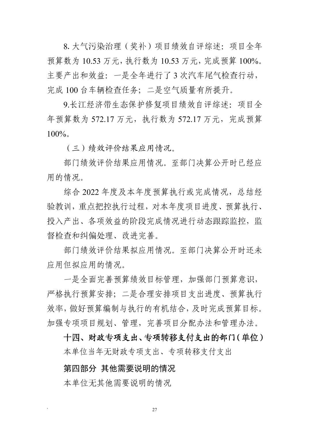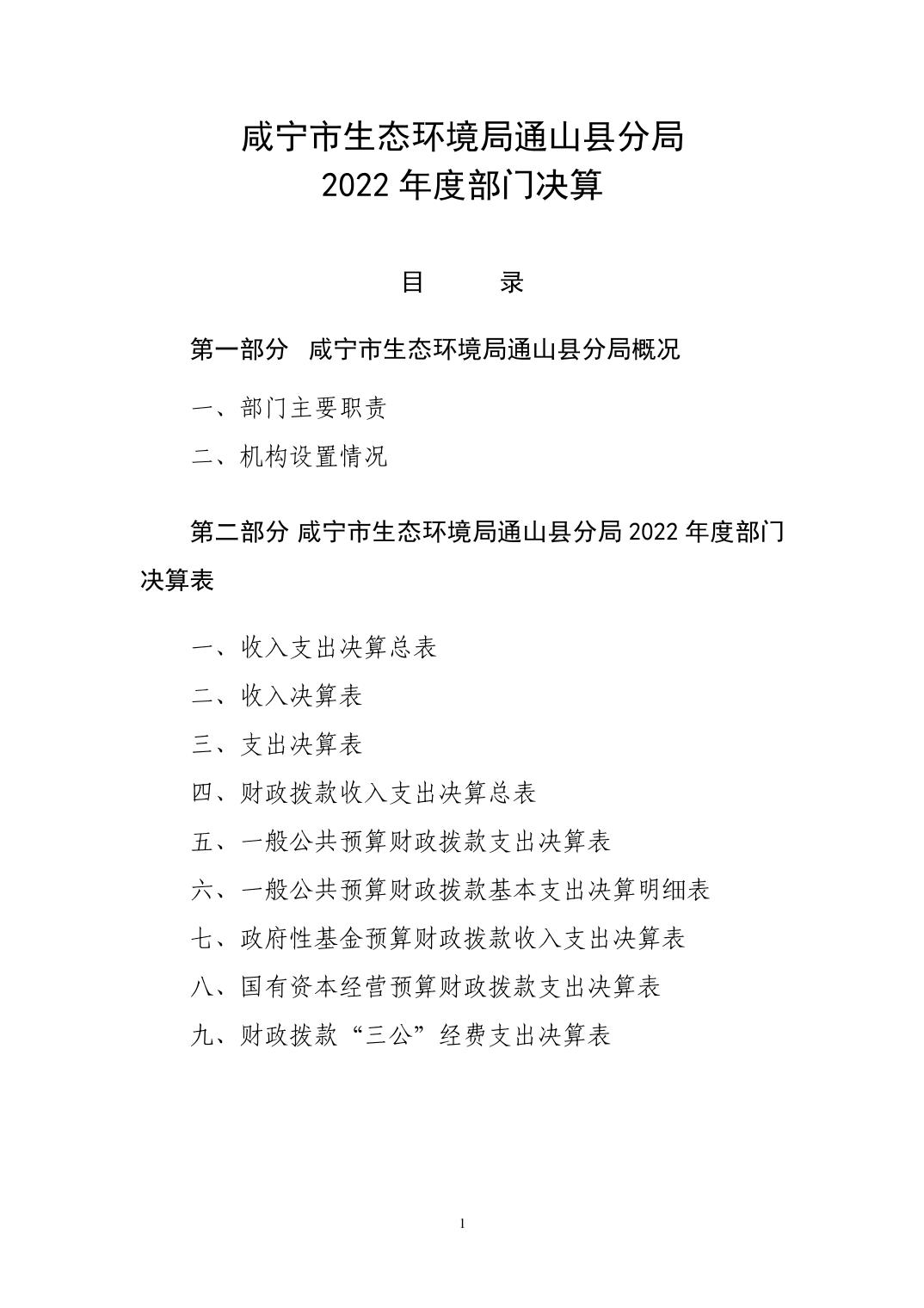 名 称: 咸宁市生态环境局通山县分局2022年度部门决算 发布日期: 2023年11月07日