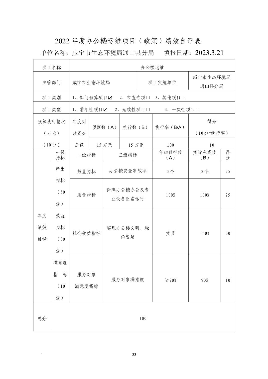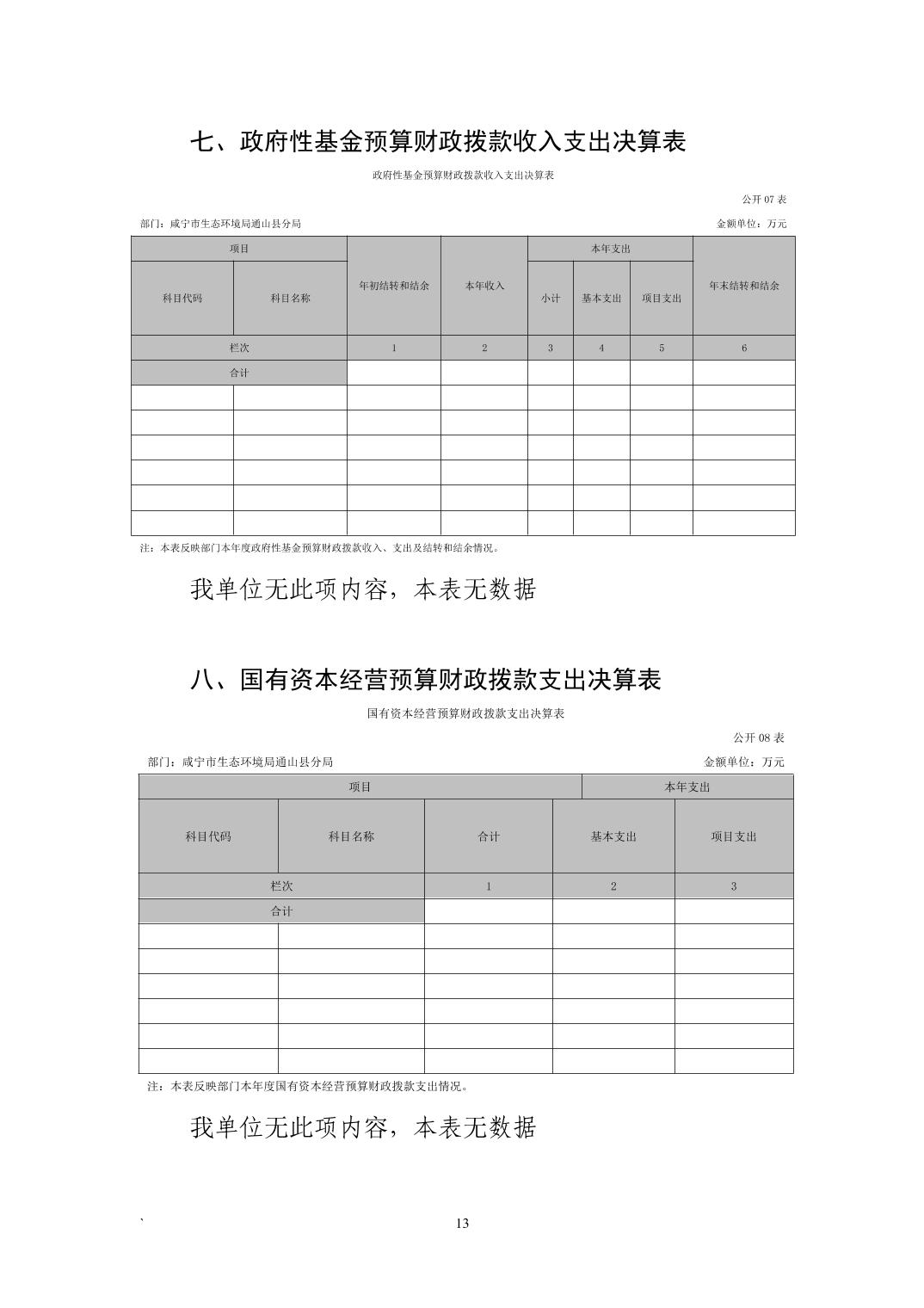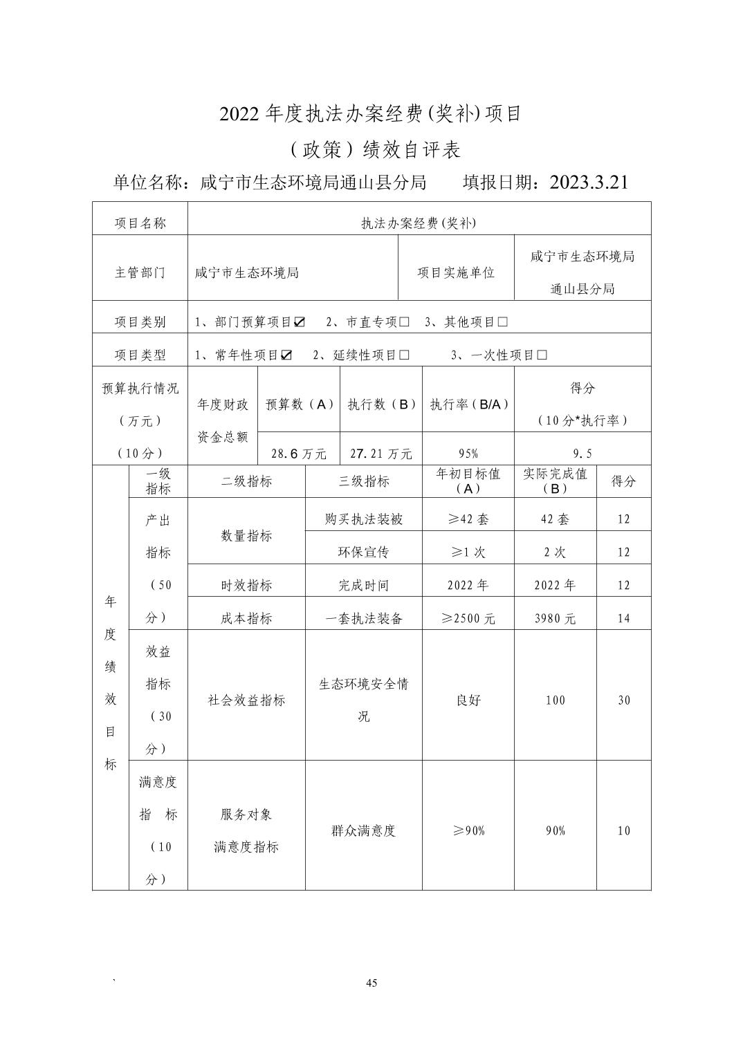 名 称: 咸宁市生态环境局通山县分局2022年度部门决算 发布日期: 2023年11月07日