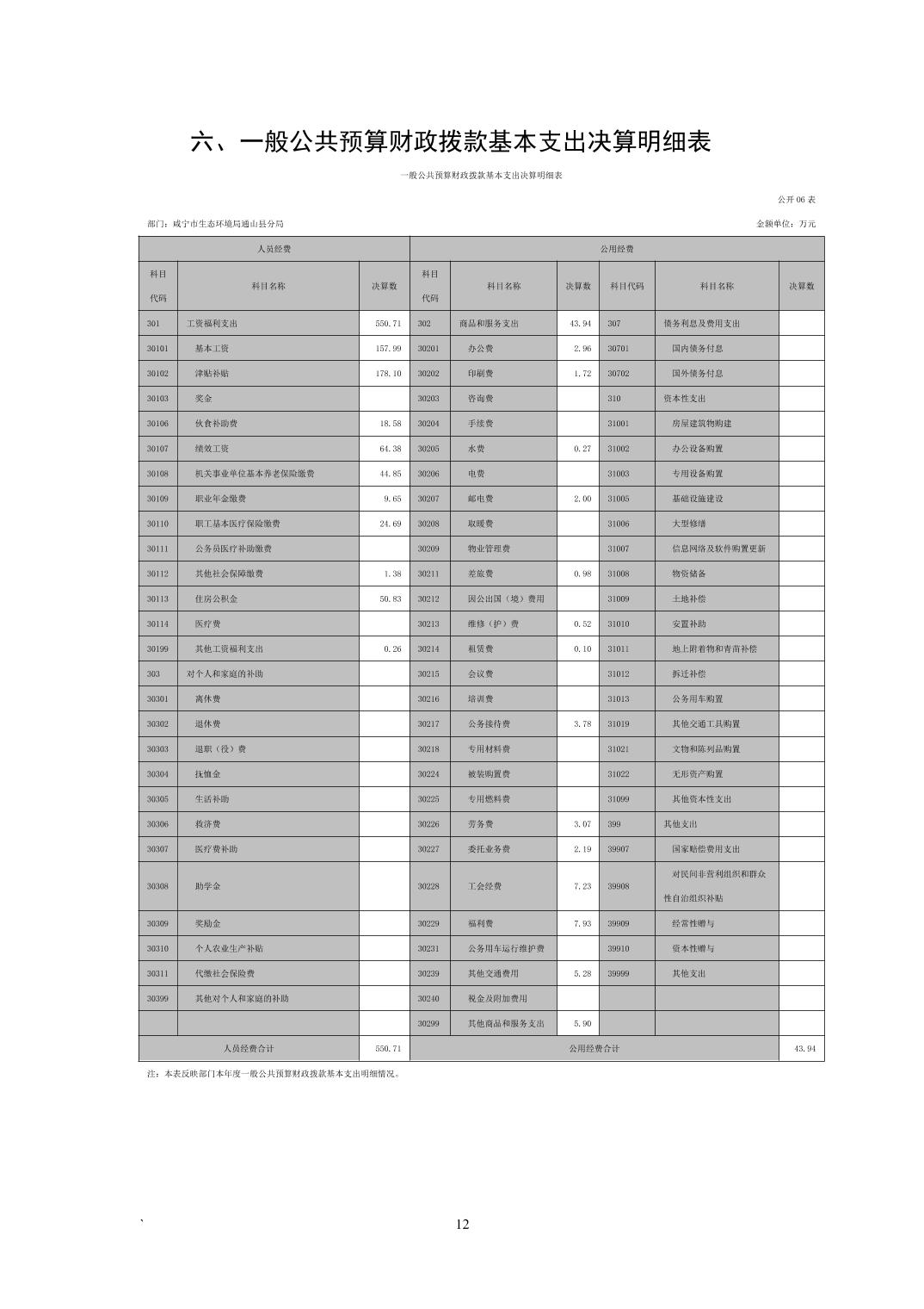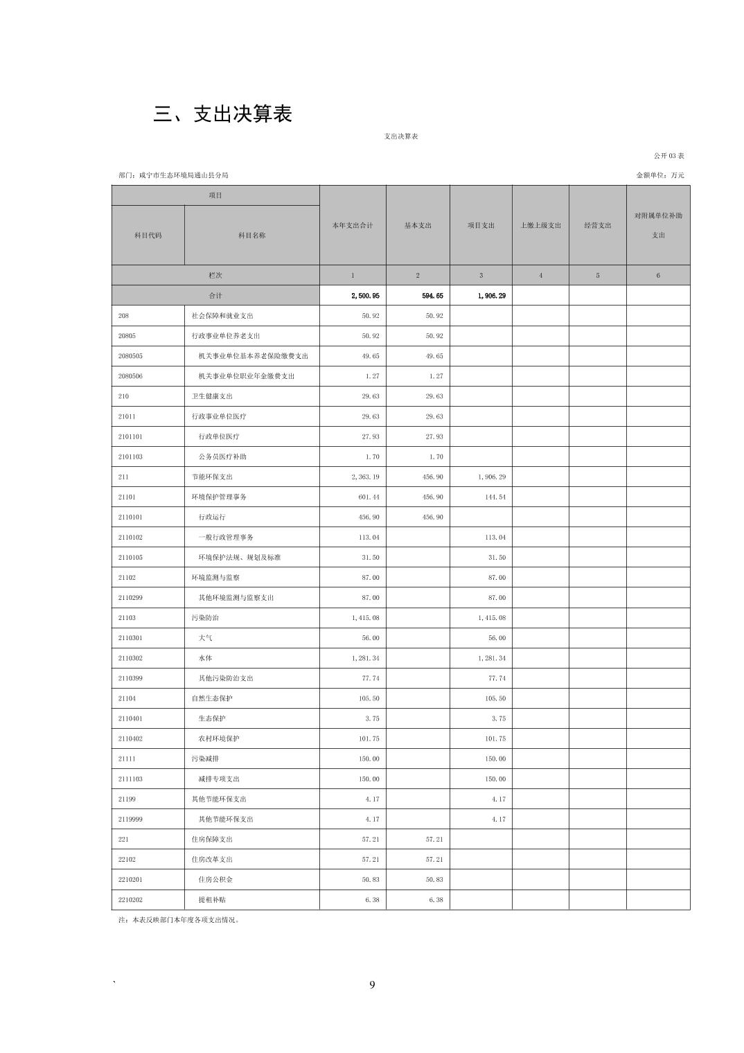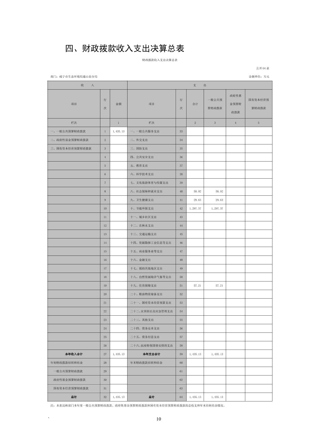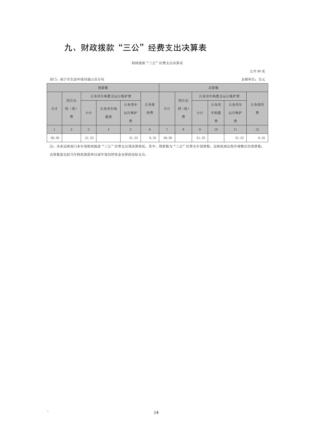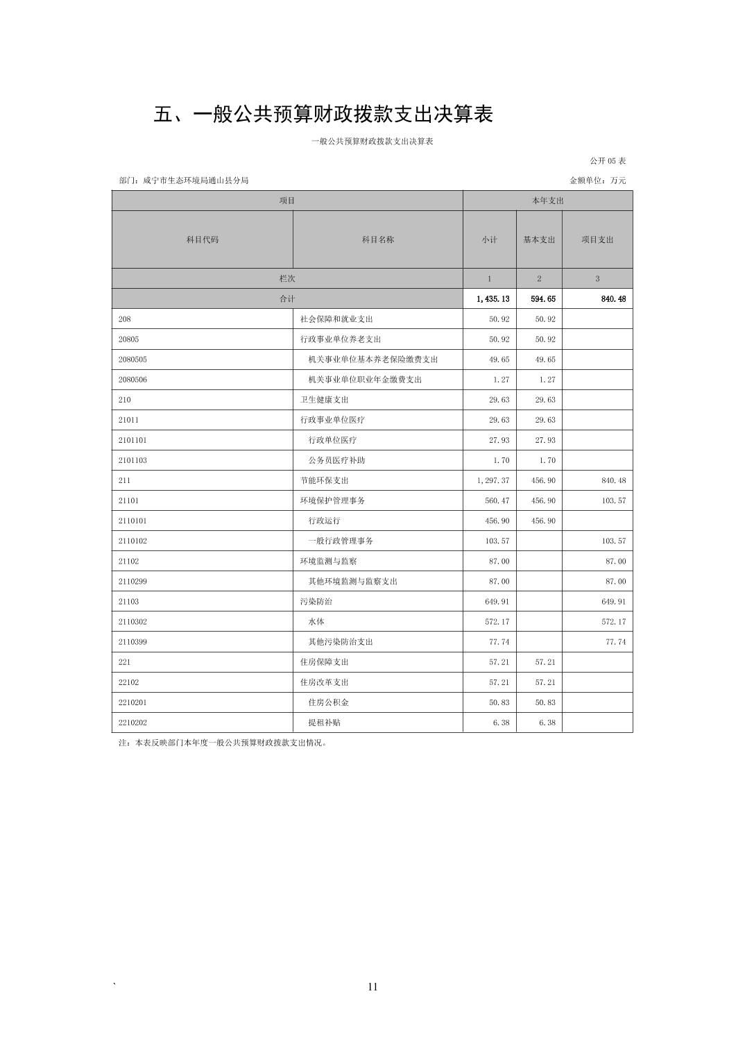 咸宁市生态环境局通山县分局2022年度部门决算