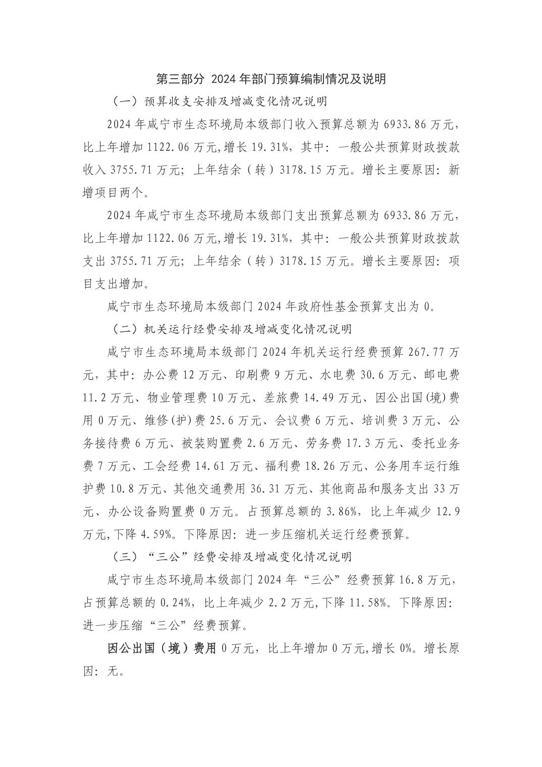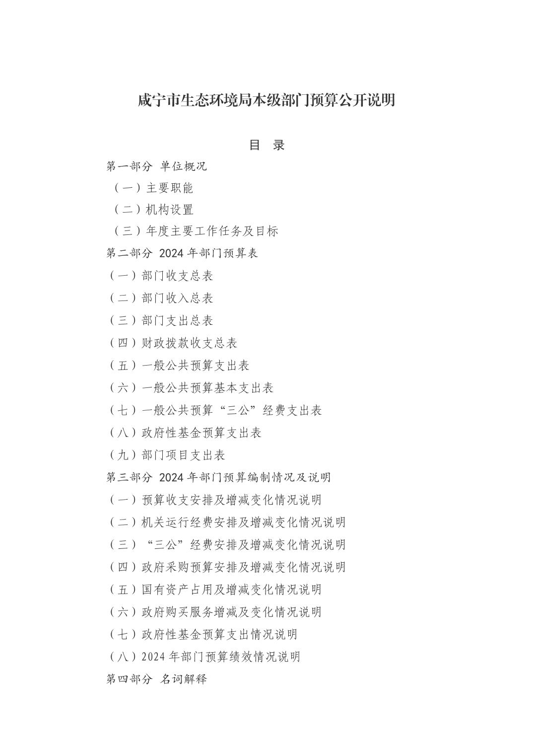 名 称: 咸宁市生态环境局2024年本级部门预算公开说明 发布日期: 2024年02月06日