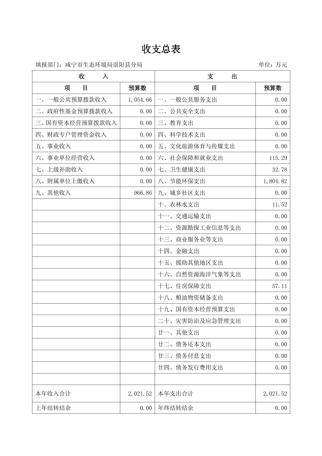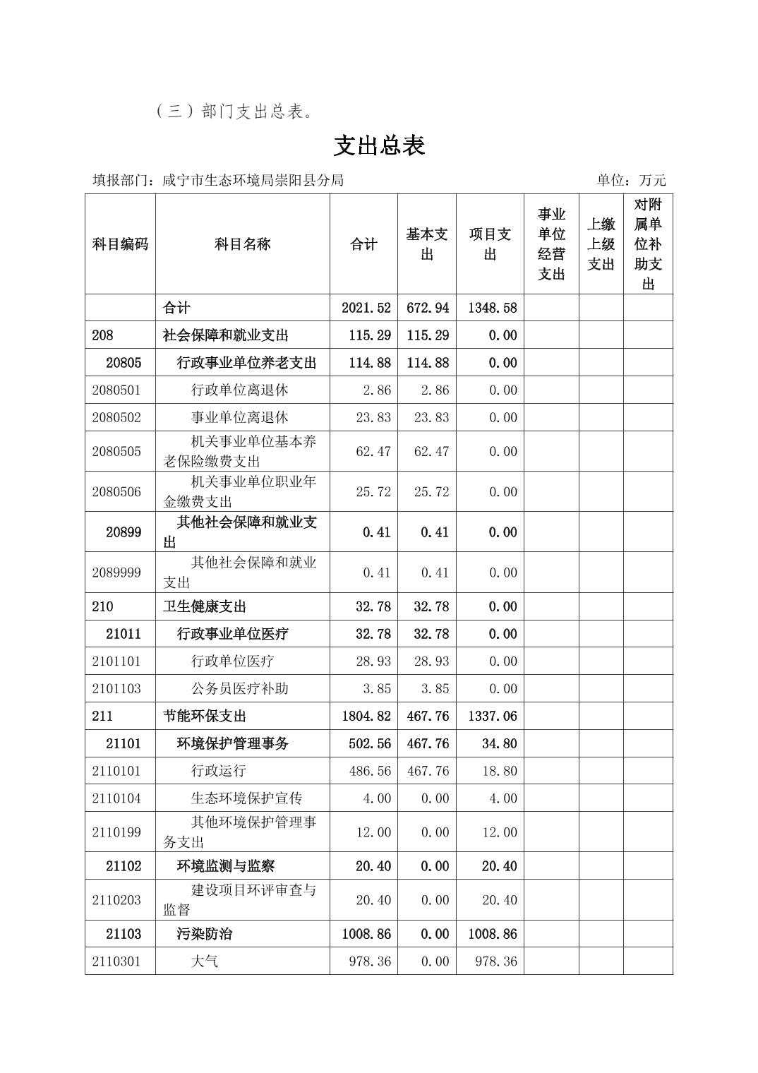 名 称: 咸宁市生态环境局崇阳县分局2024年部门预算公开说明 发布日期: 2024年02月06日