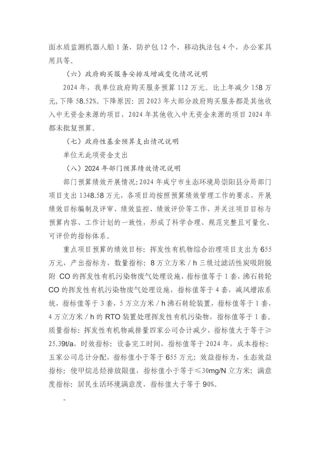 咸宁市生态环境局崇阳县分局2024年部门预算公开说明