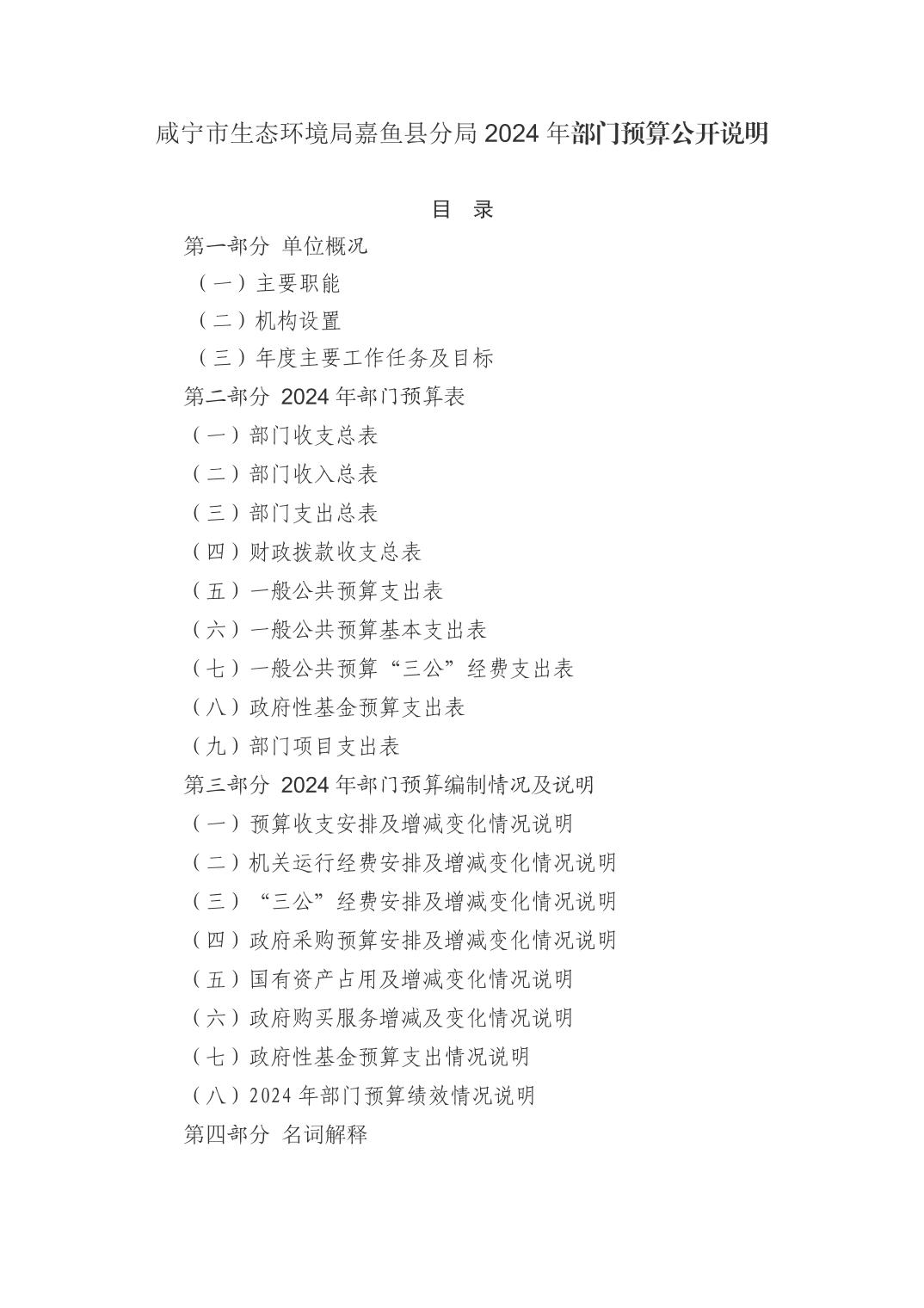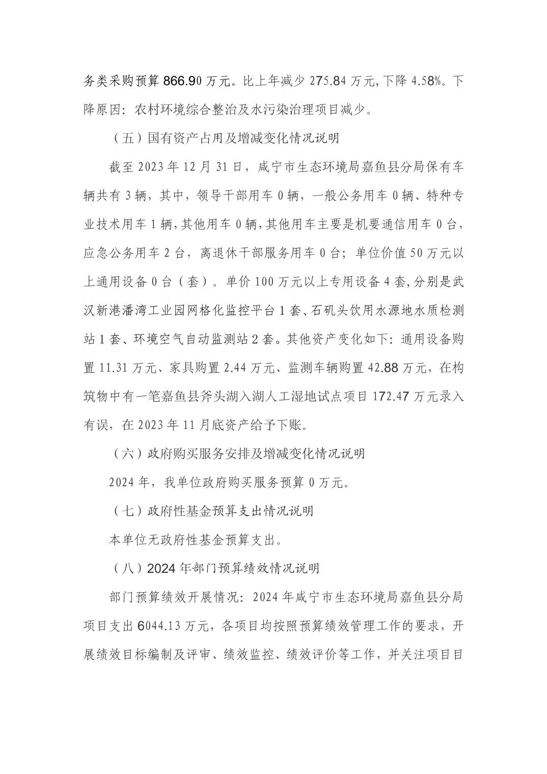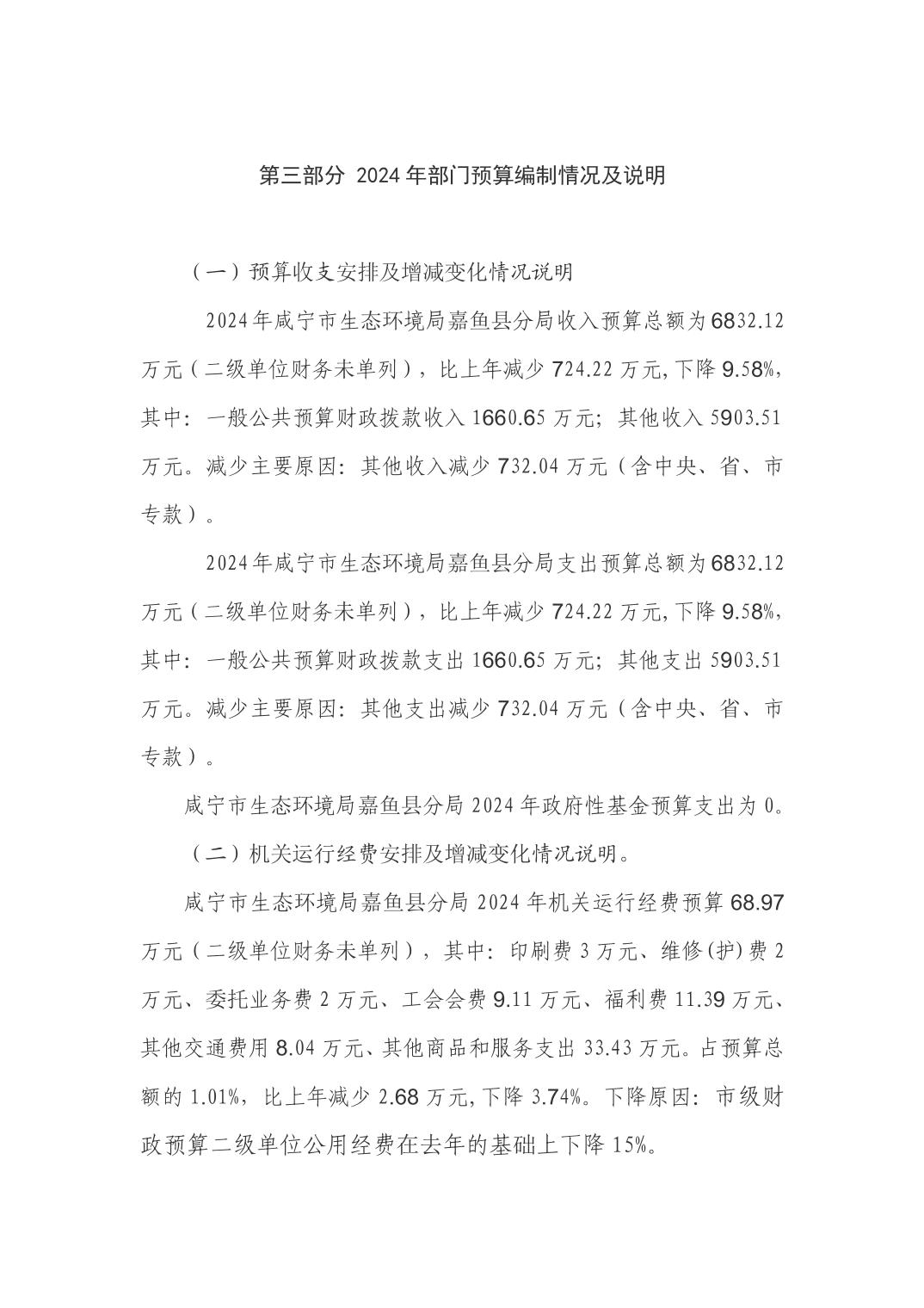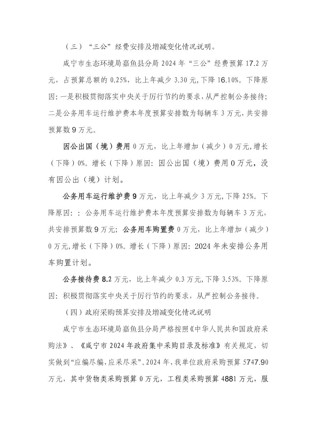 咸宁市生态环境局嘉鱼县分局2024年部门预算公开说明