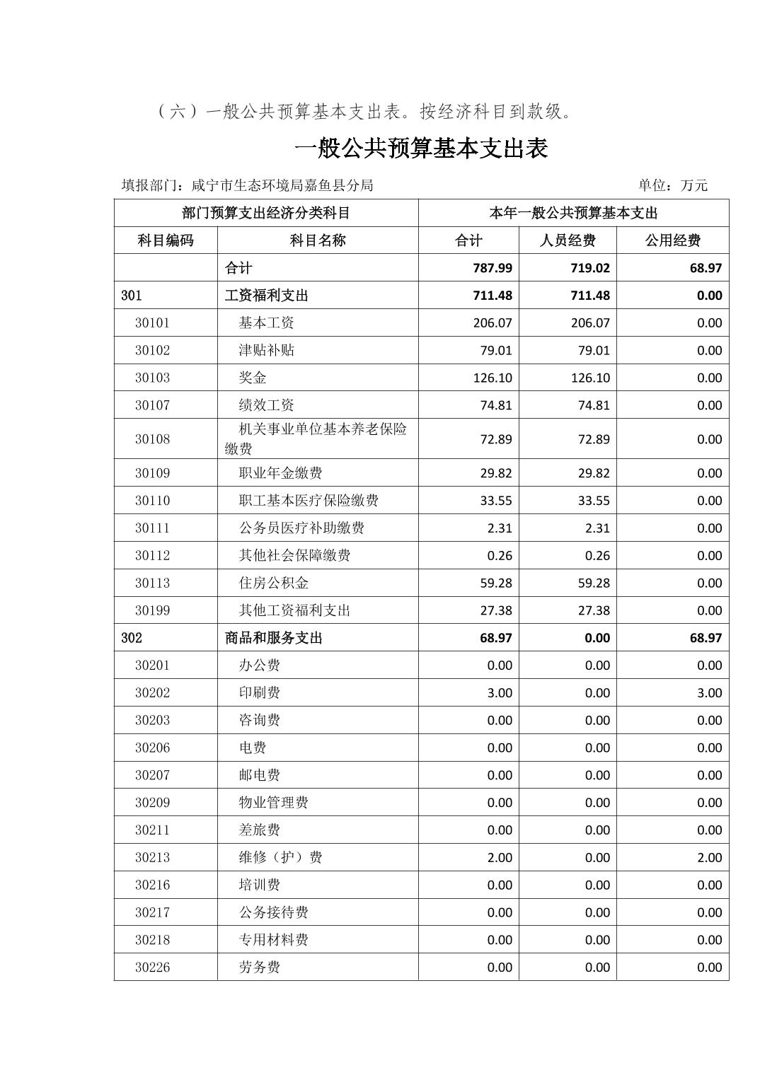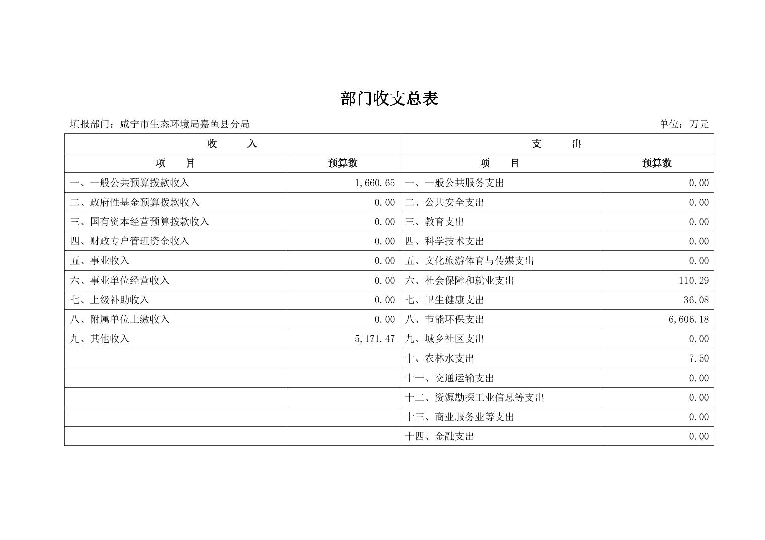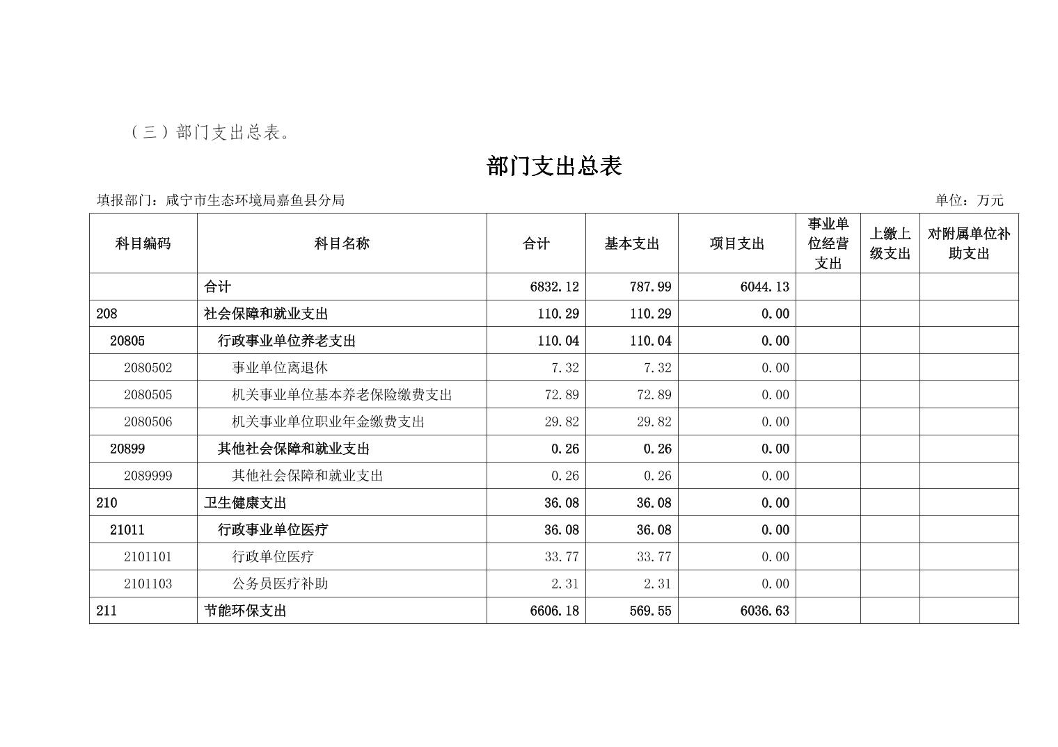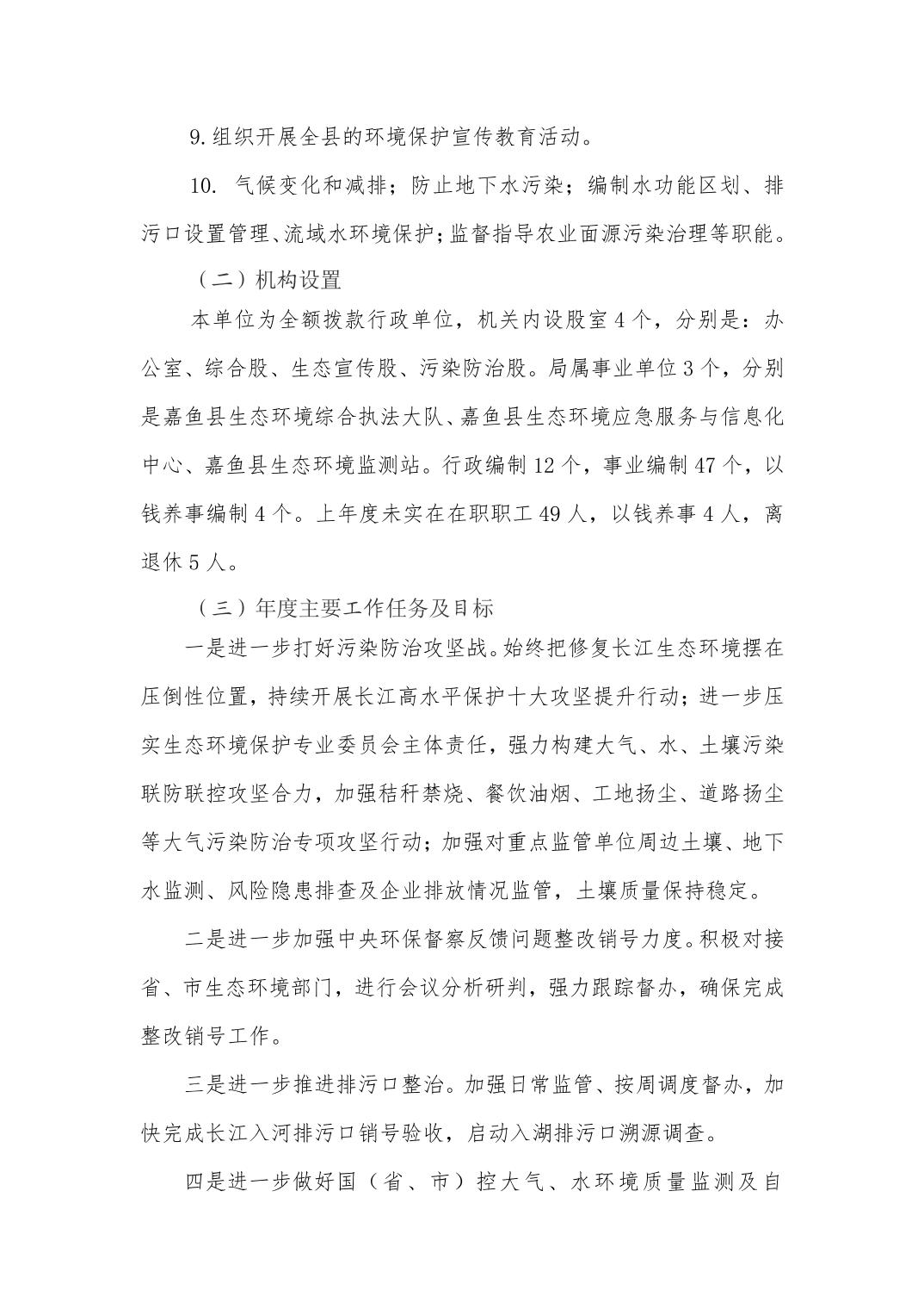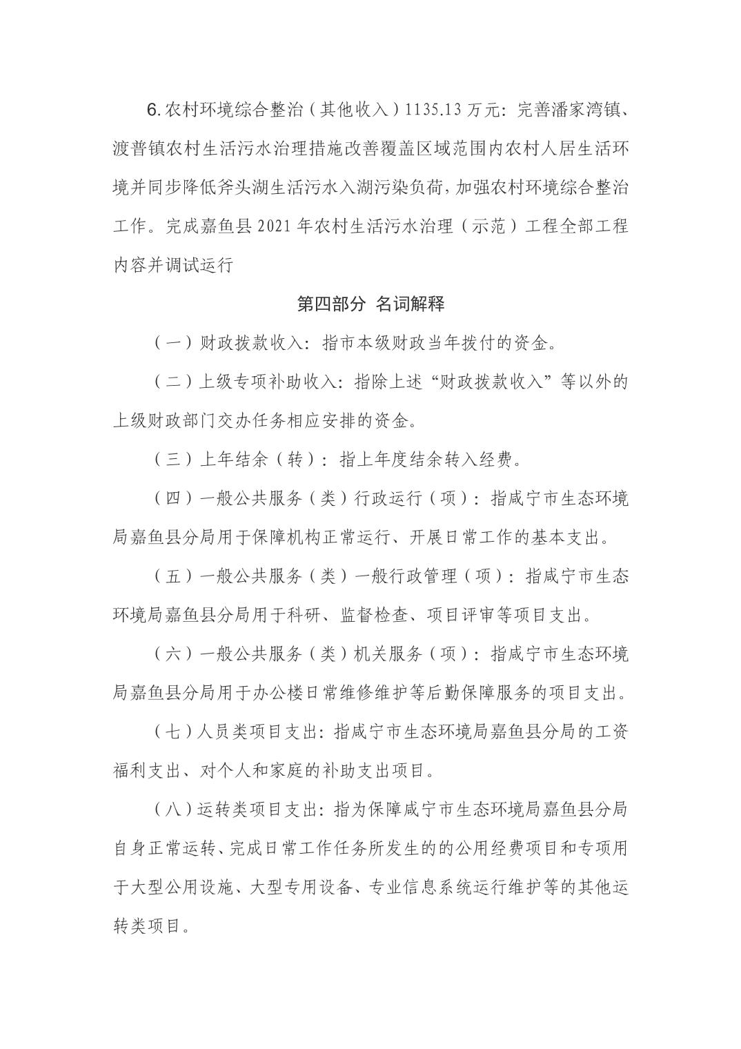 咸宁市生态环境局嘉鱼县分局2024年部门预算公开说明