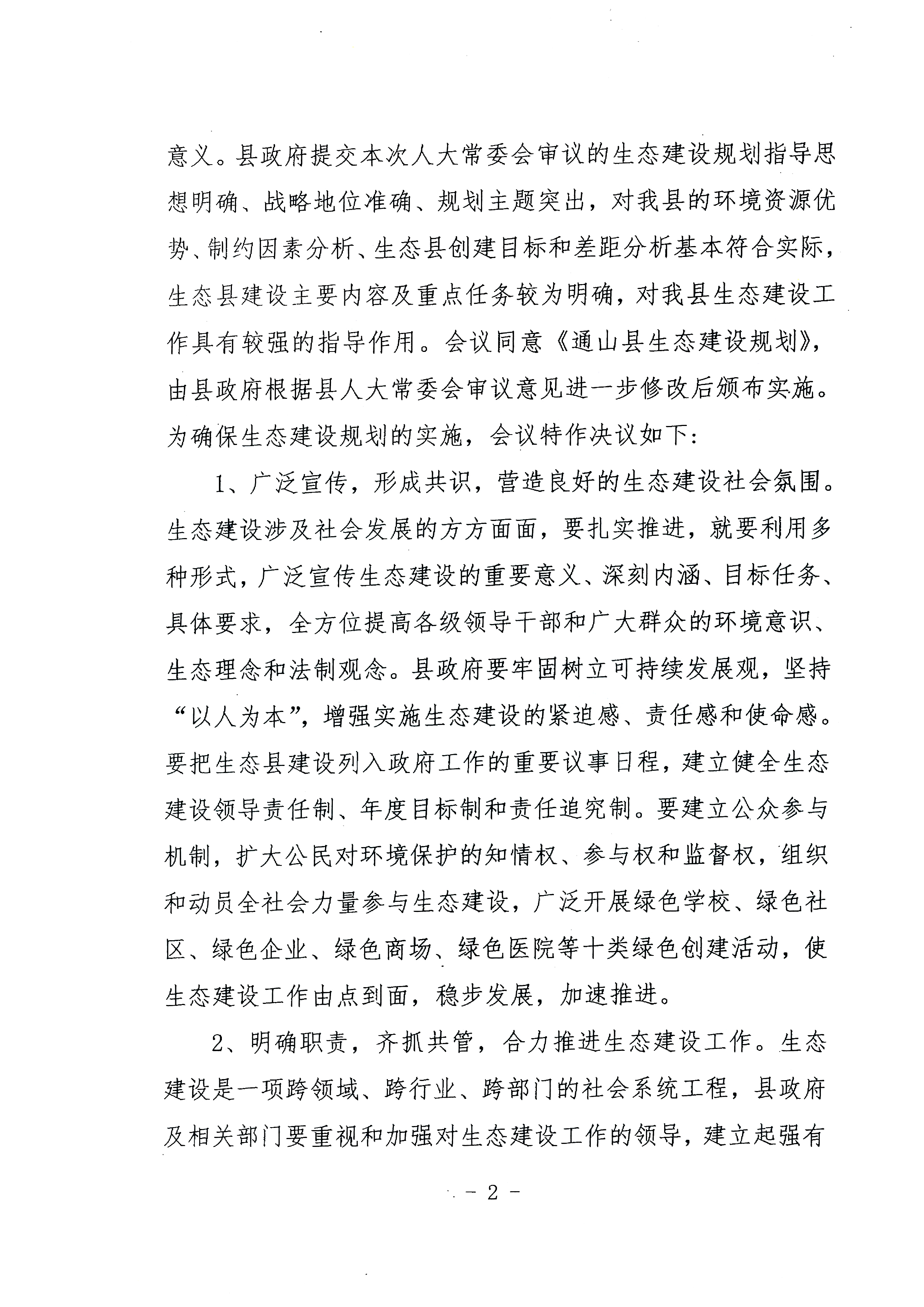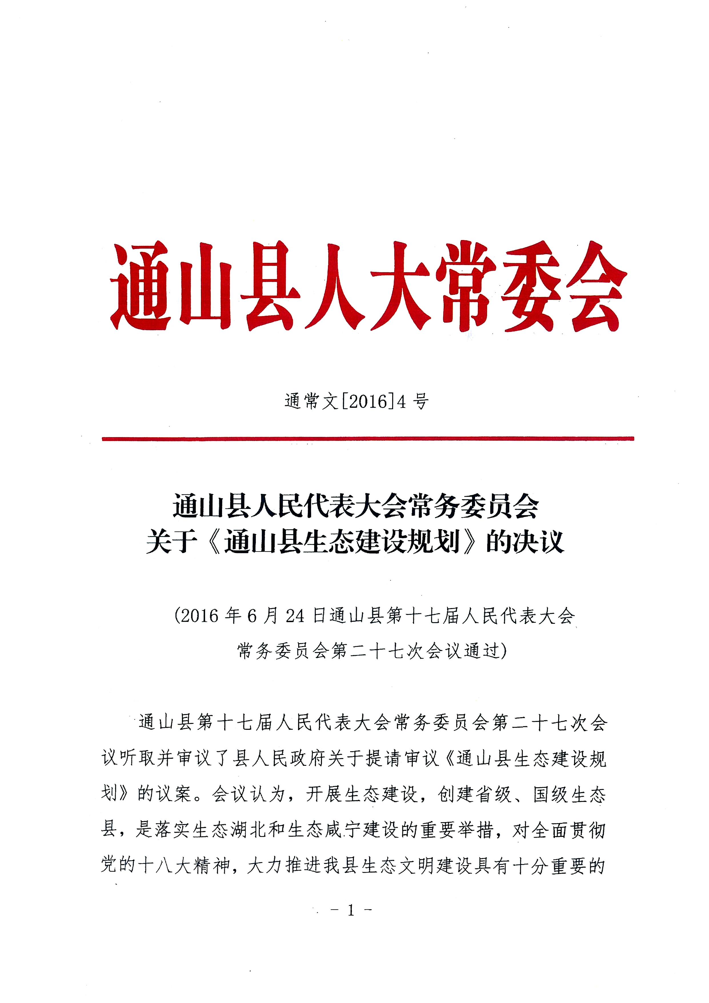 通山县人民代表大会常务委员会关于通山县生态建设规划的决议