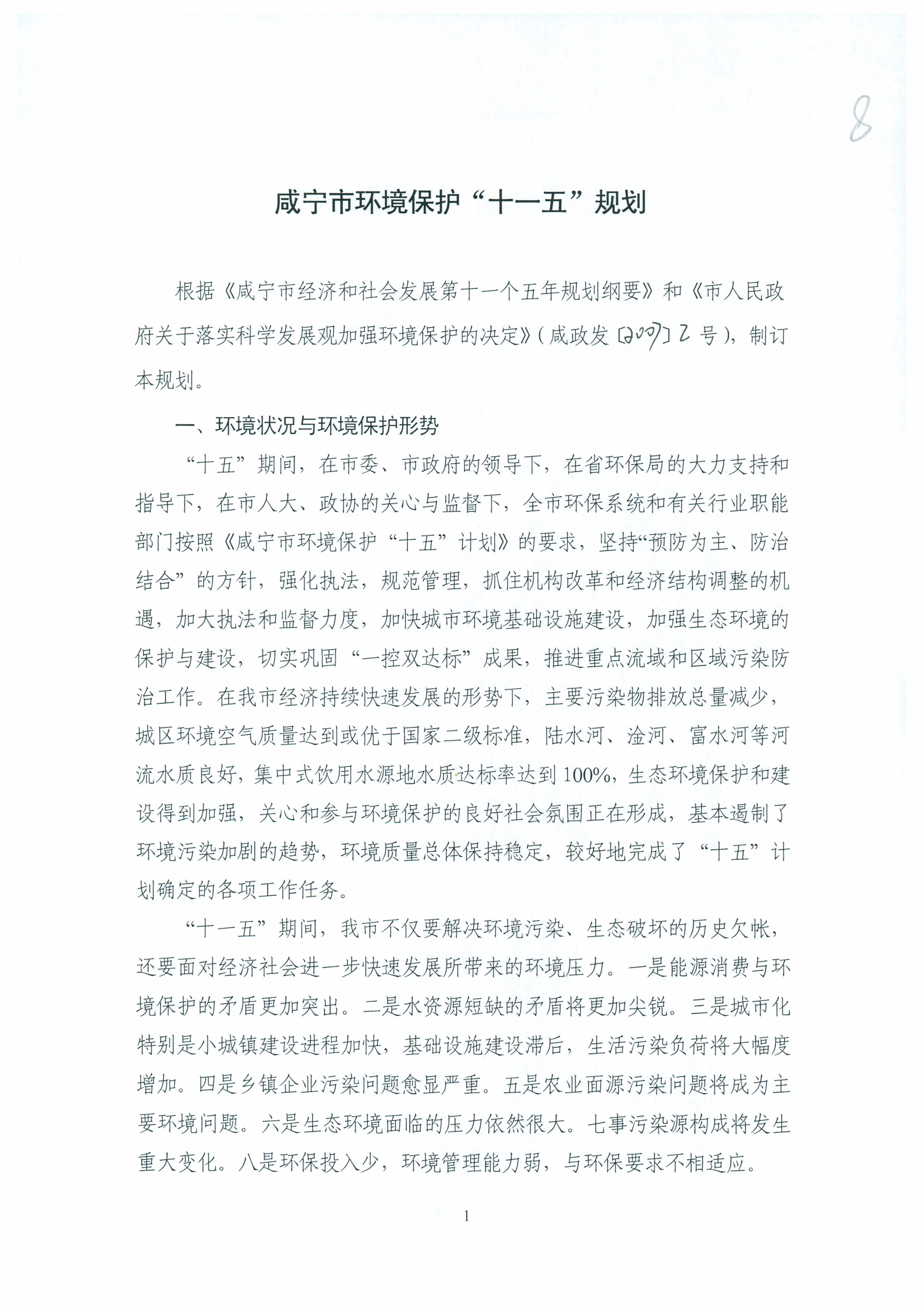 咸宁市环境保护“十一五”规划