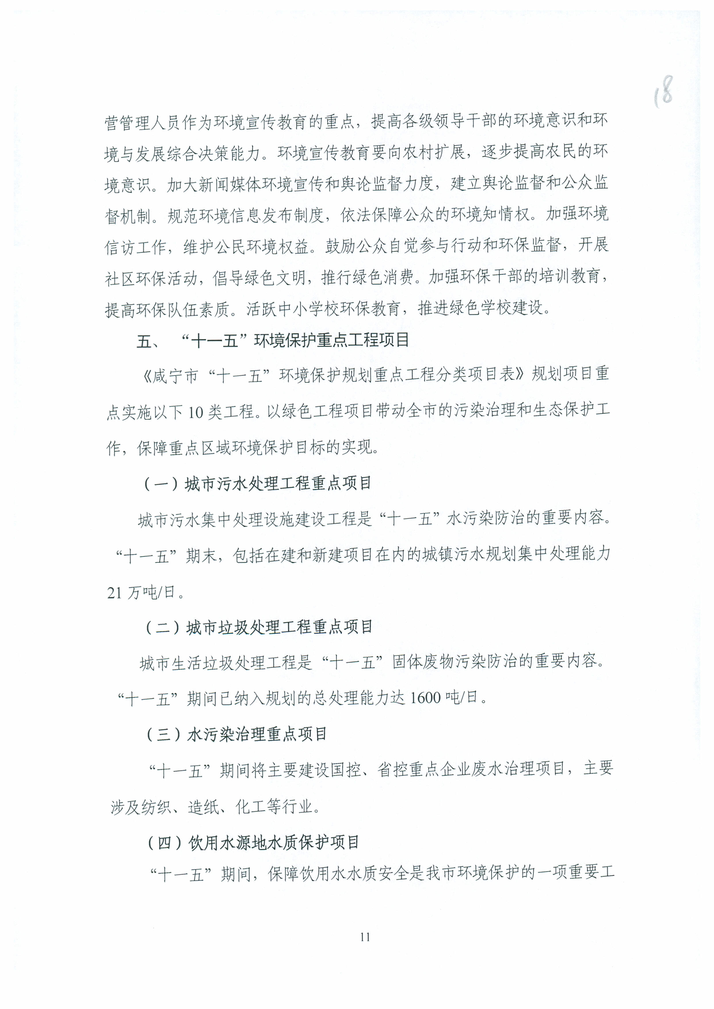名 称: 咸宁市环境保护“十一五”规划 发布日期: 2021年11月30日