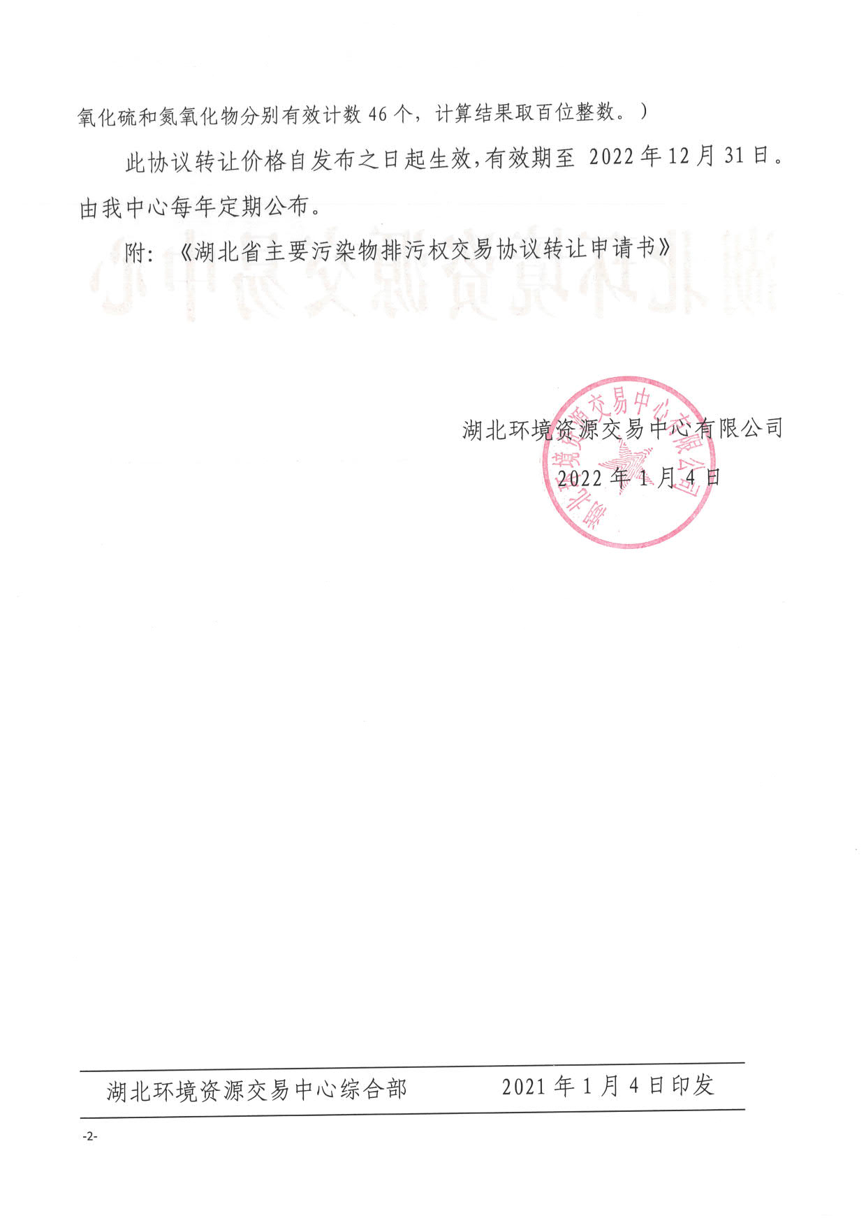 关于湖北省主要污染物排污权2022年度协议转让价格的公告