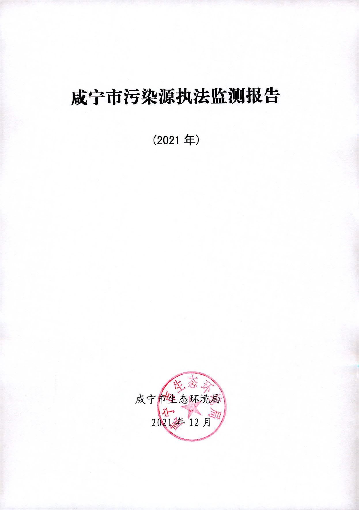 名 称: 咸宁市污染源执法监测报告(2021) 发布日期: 2022年02月23日