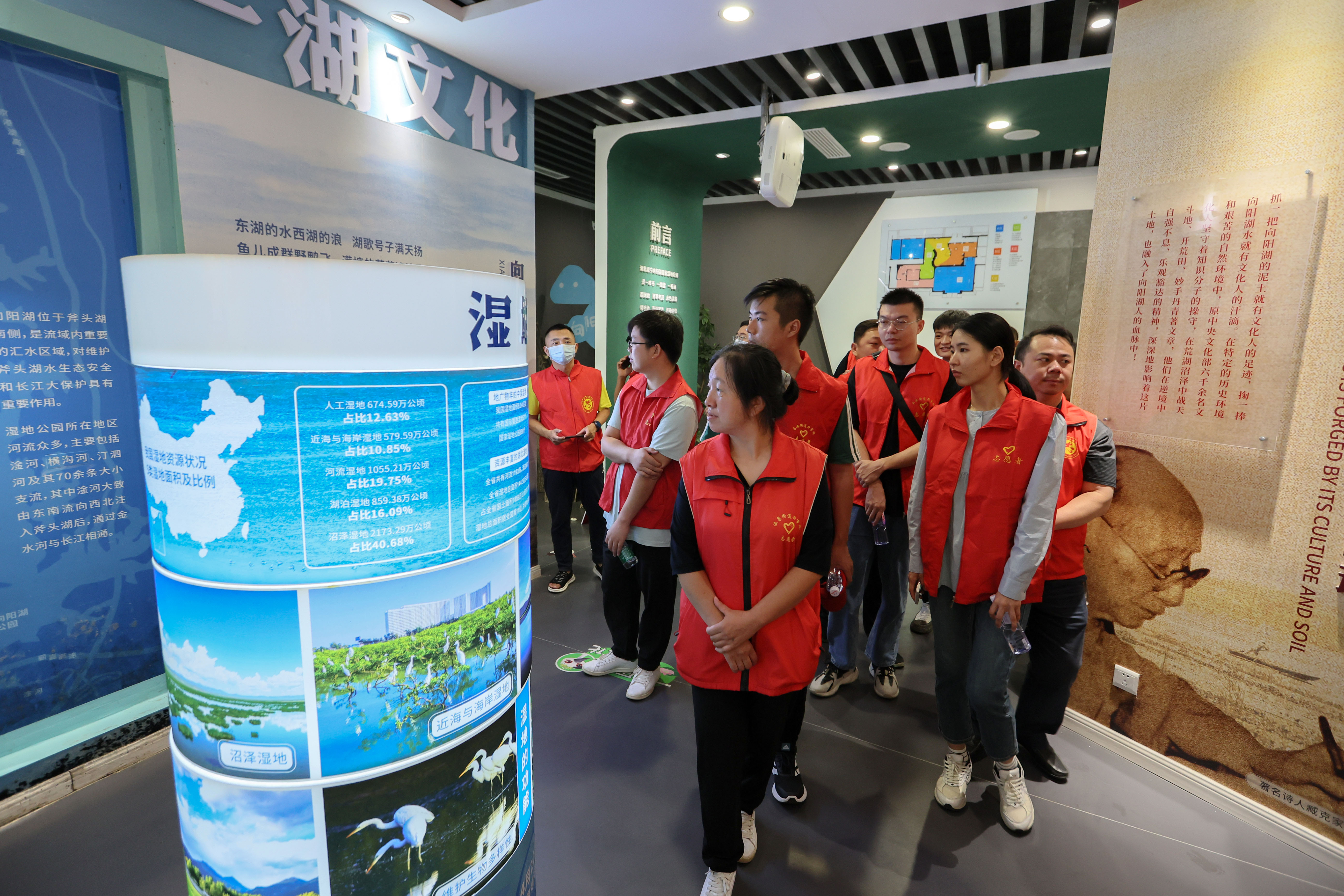 向阳湖国家湿地公园生态资源富集、文化底蕴深厚,集城郊湿地、农耕湿地、文化湿地于一体。志愿者们集体参观向阳湖国家湿地公园科普宣教展馆和水生植物园。了解湿地对于生物多样性和生态调节的重要作用。