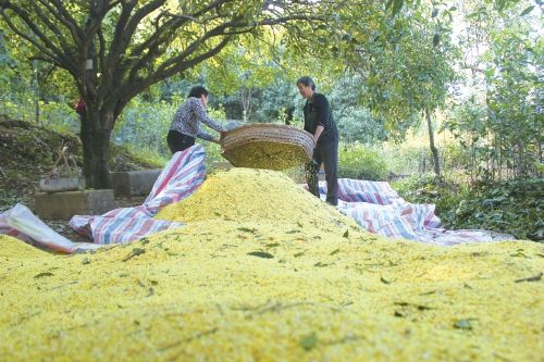 咸宁市咸安区桂花镇村民在收获桂花。资料图