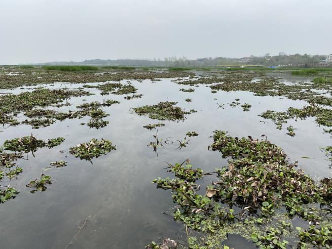 湖面的水葫芦、漂浮物以及杂草严重影响水质;