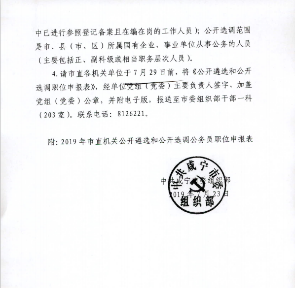 关于市直机关单位申报2019年公开遴选和公开选调公务员职位计划的通知