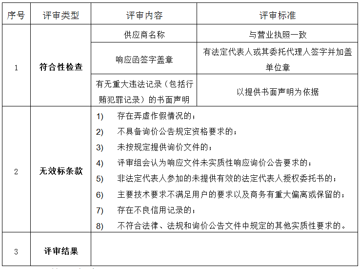 2.询价评审小组(由采购人召集相关人员组成)按询价文件要求对各响应文件的有效性、完整性和响应程度进行审查,确定合格响应供应商。