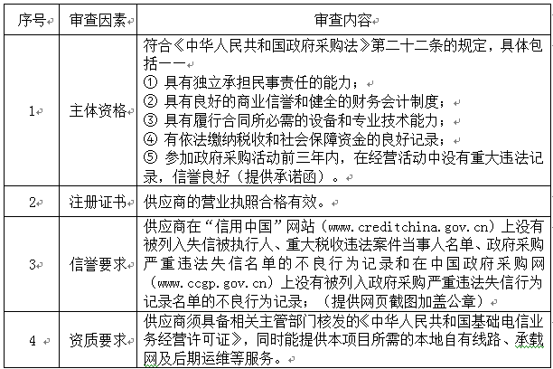 1、资质审查(否决指标,不记分)