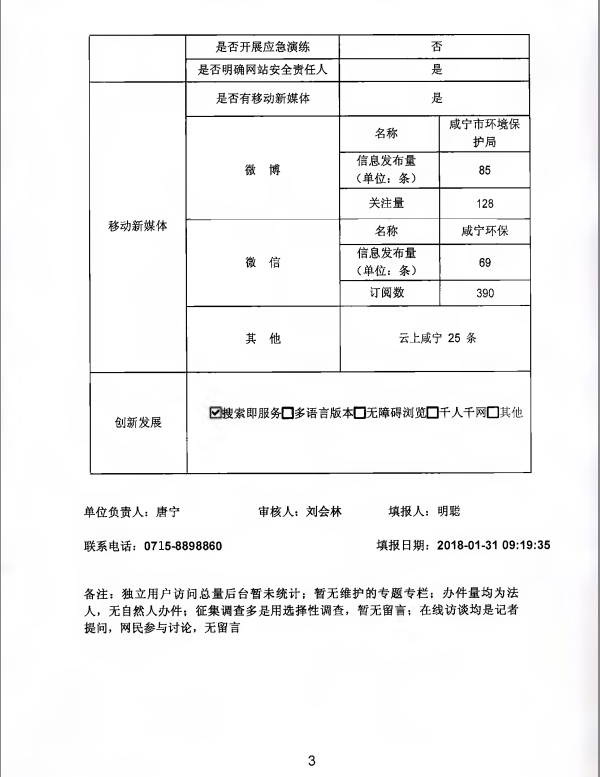 名 称: 政府网站工作年度报表(2017年度) 发布日期: 2018年01月31日