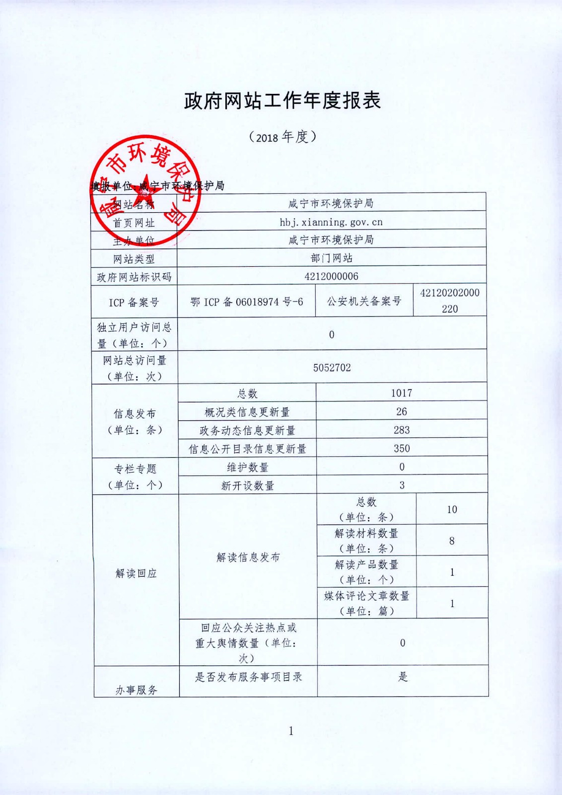 名 称: 政府网站工作年度报表(2018年度) 发布日期: 2019年01月28日