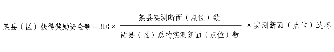 市财政每年出资300万元用于奖励咸宁市斧头湖流域水环境质量改善的县(区)。当年断面(点位)实际监测频次低于4次的,不参与奖励资金核算。根据断面(点位)水质监测年均浓度值评价断面(点位)达标情况,达标率80%及以上的县(区)获得奖励资金,计算公式如下: