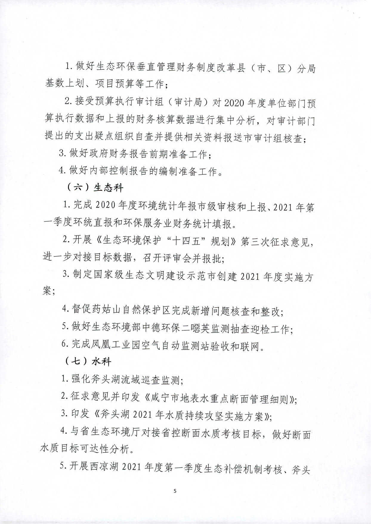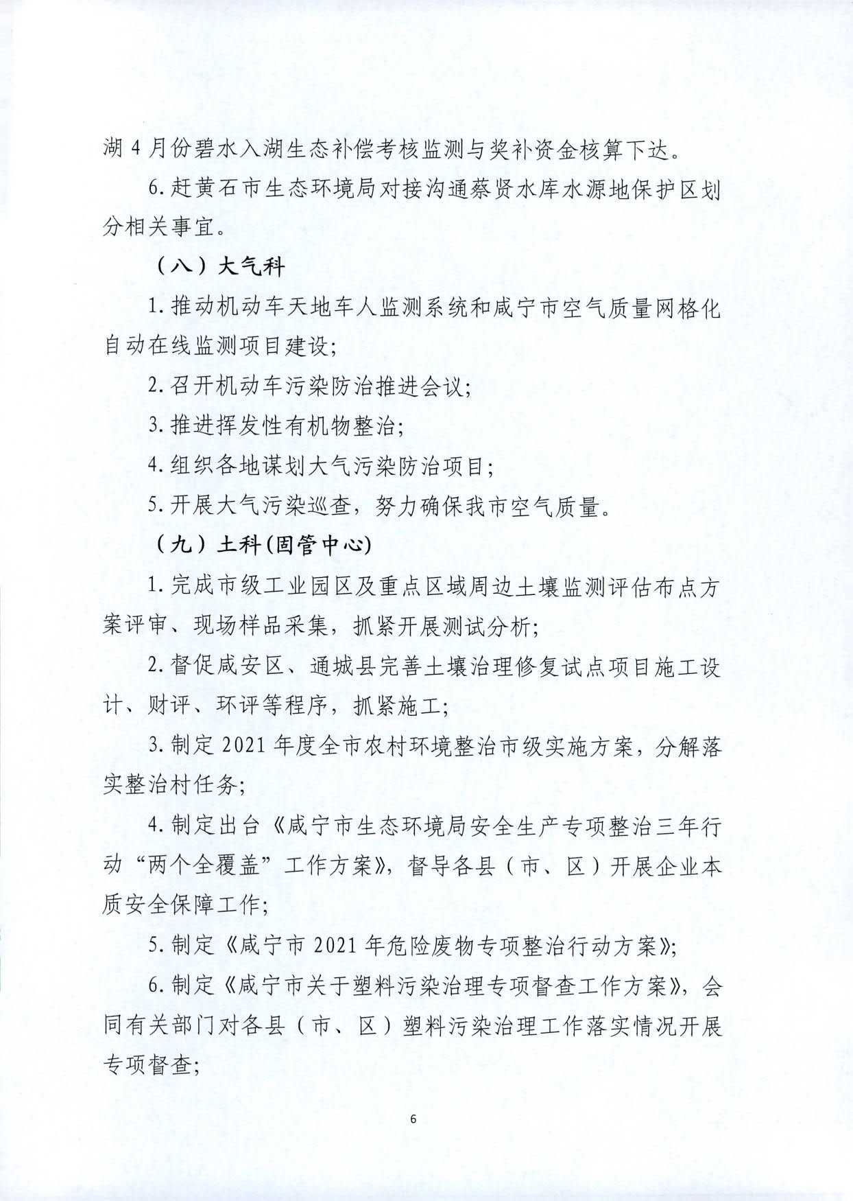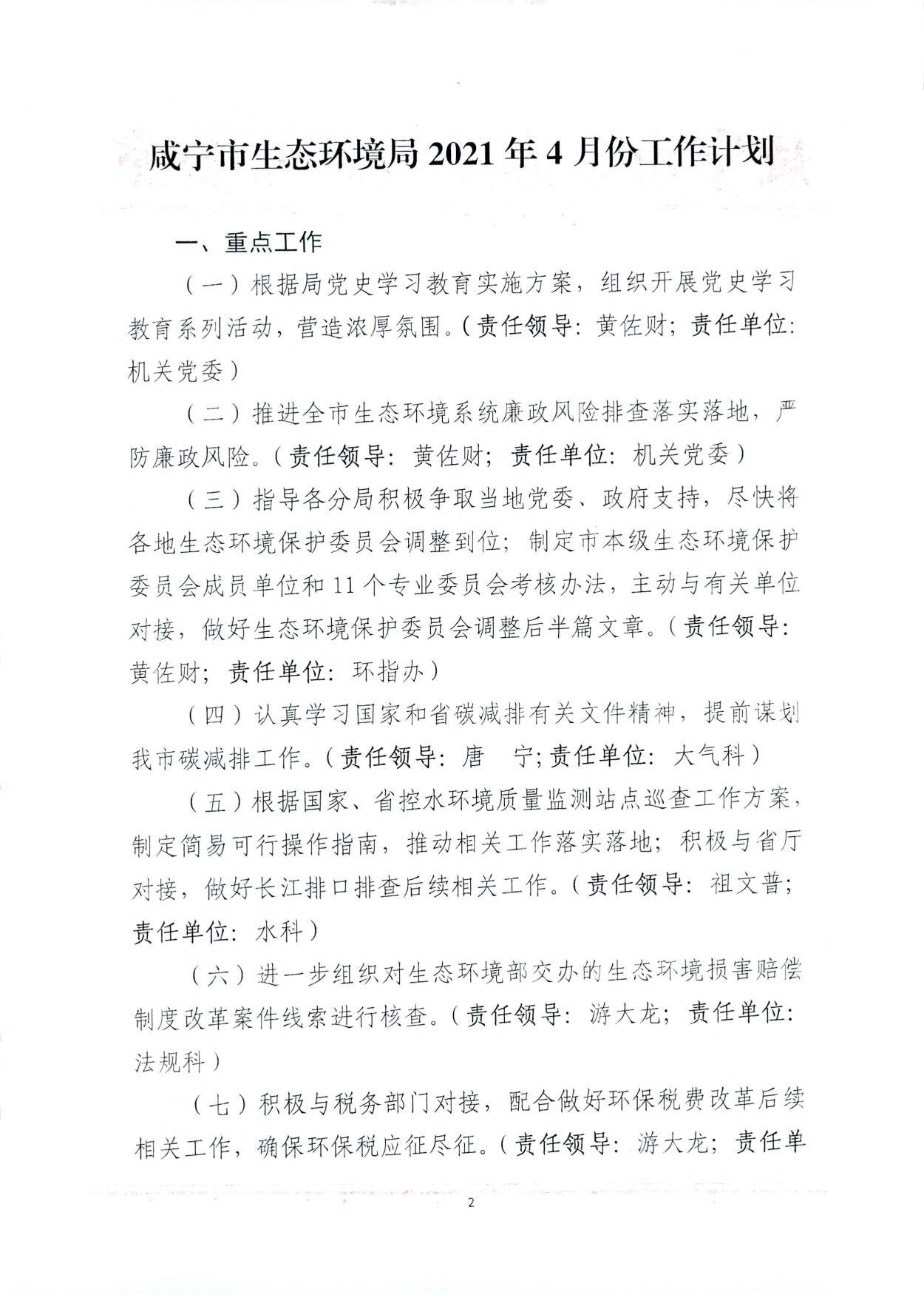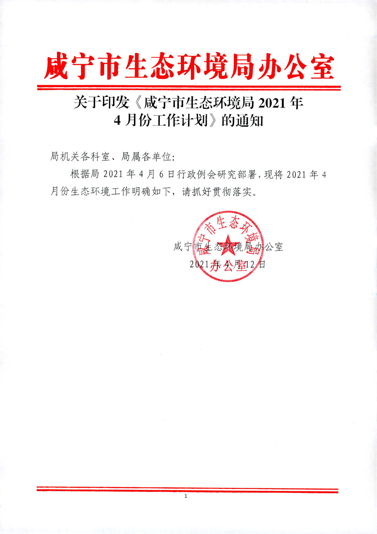 关于印发《咸宁市生态环境局2021年4月份工作计划》的通知
