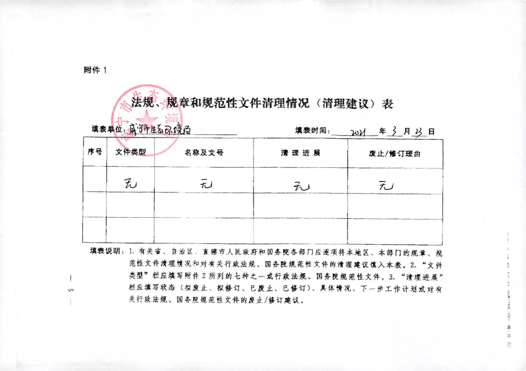 名 称: 咸宁市生态环境局关于对开展涉及长江流域保护法规、规章、规范性文件清理表 发布日期: 2021年04月02日