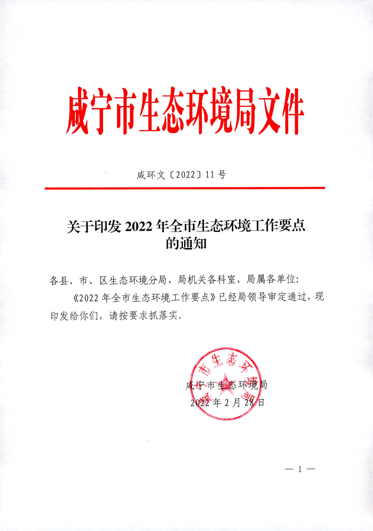 索引号 : 011337514/2022-05497 文 号 : 咸环文〔2022〕11号
