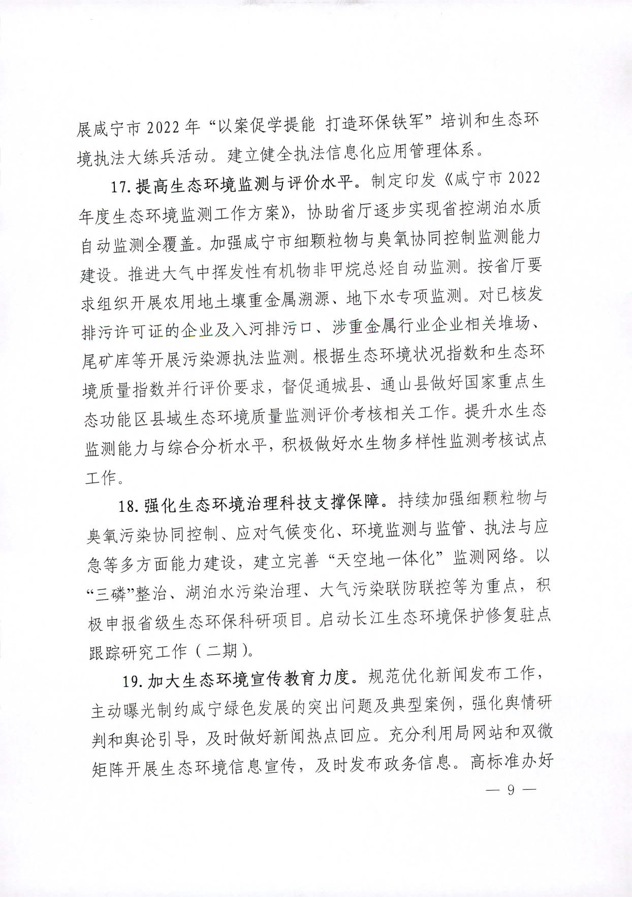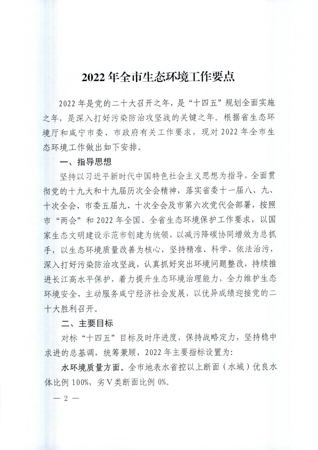 关于印发2022年全市生态环境工作要点的通知