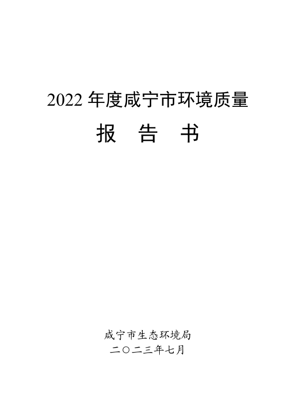 名 称: 2022年咸宁市环境质量报告书 发布日期: 2023年08月03日