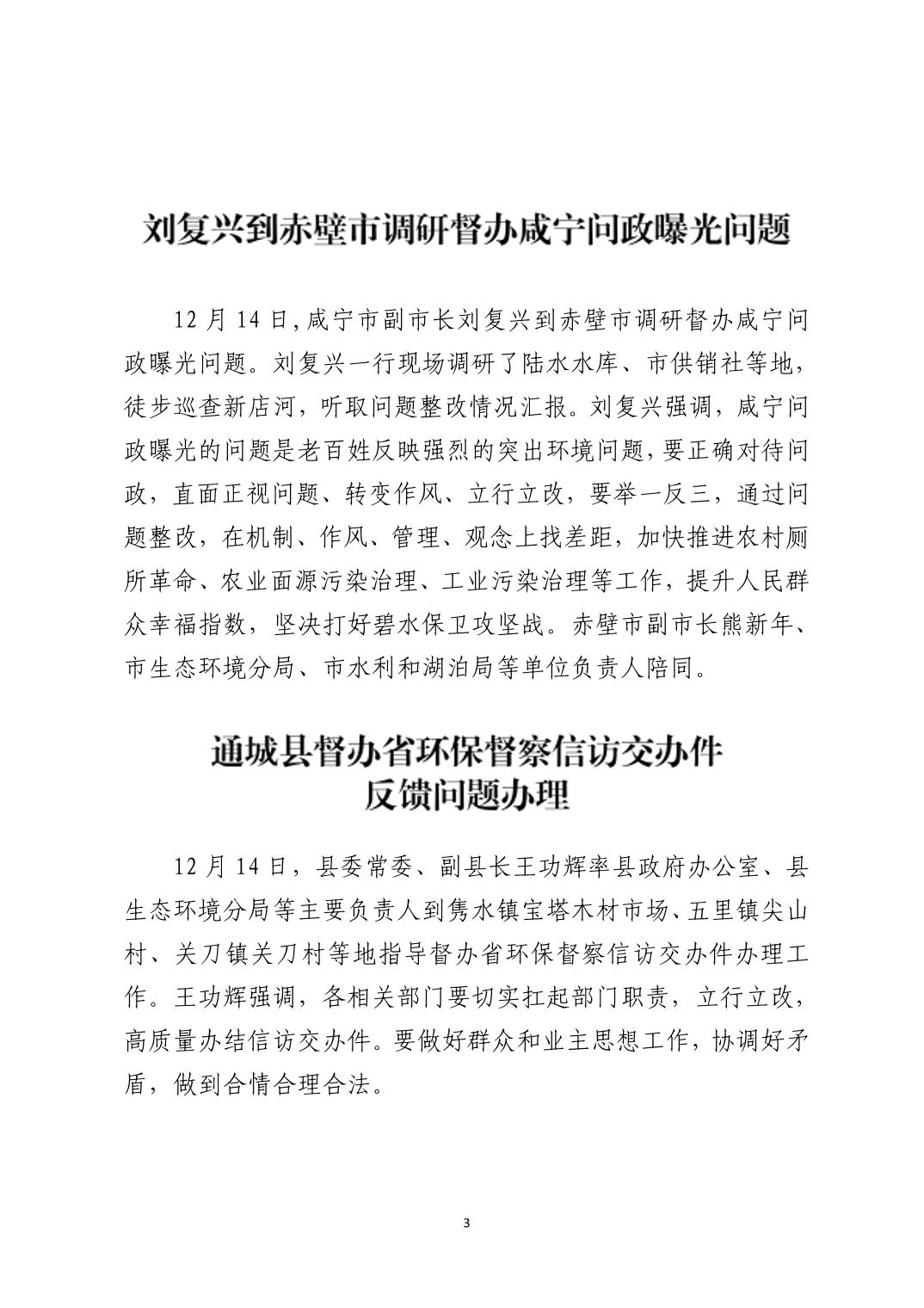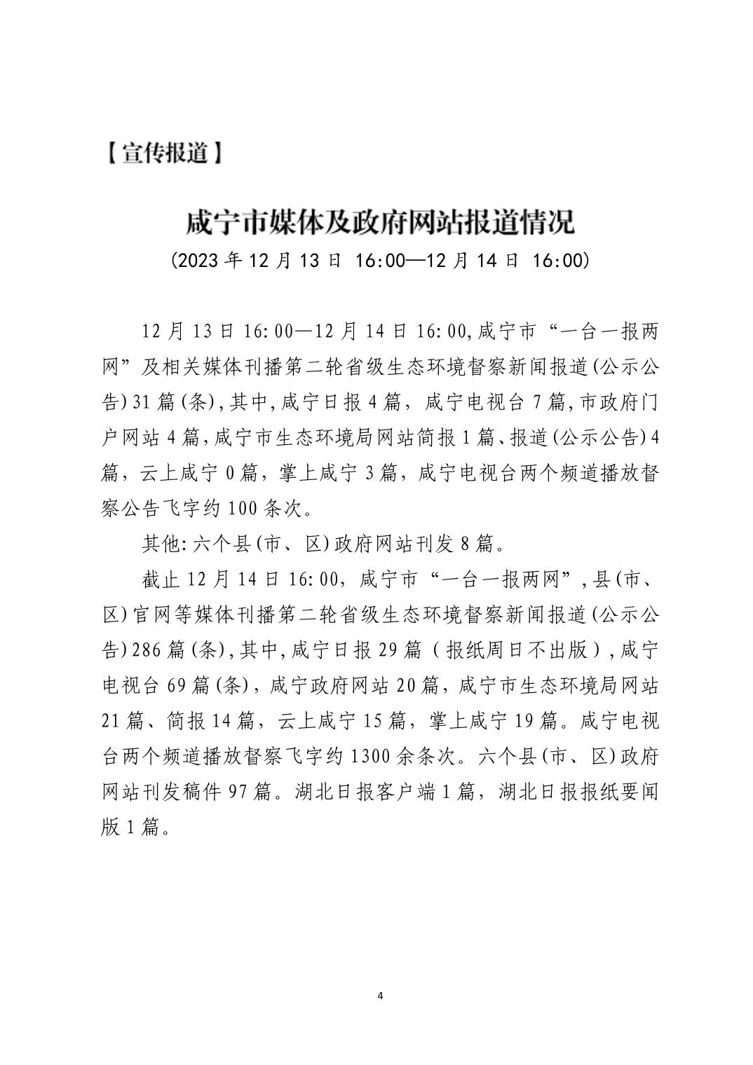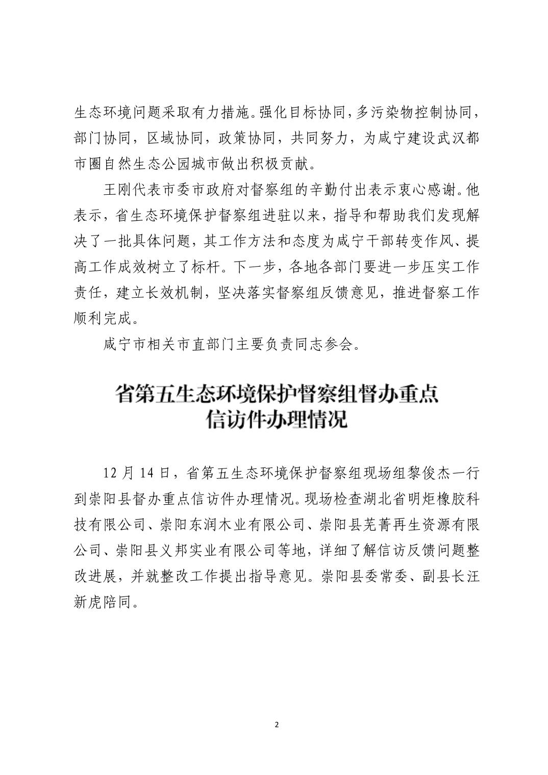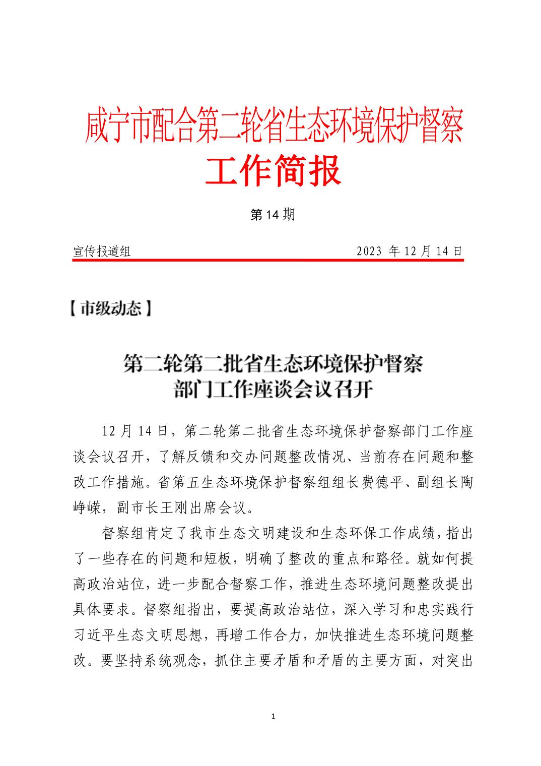 咸宁市配合第二轮省级生态环境保护督察工作简报(第14期)