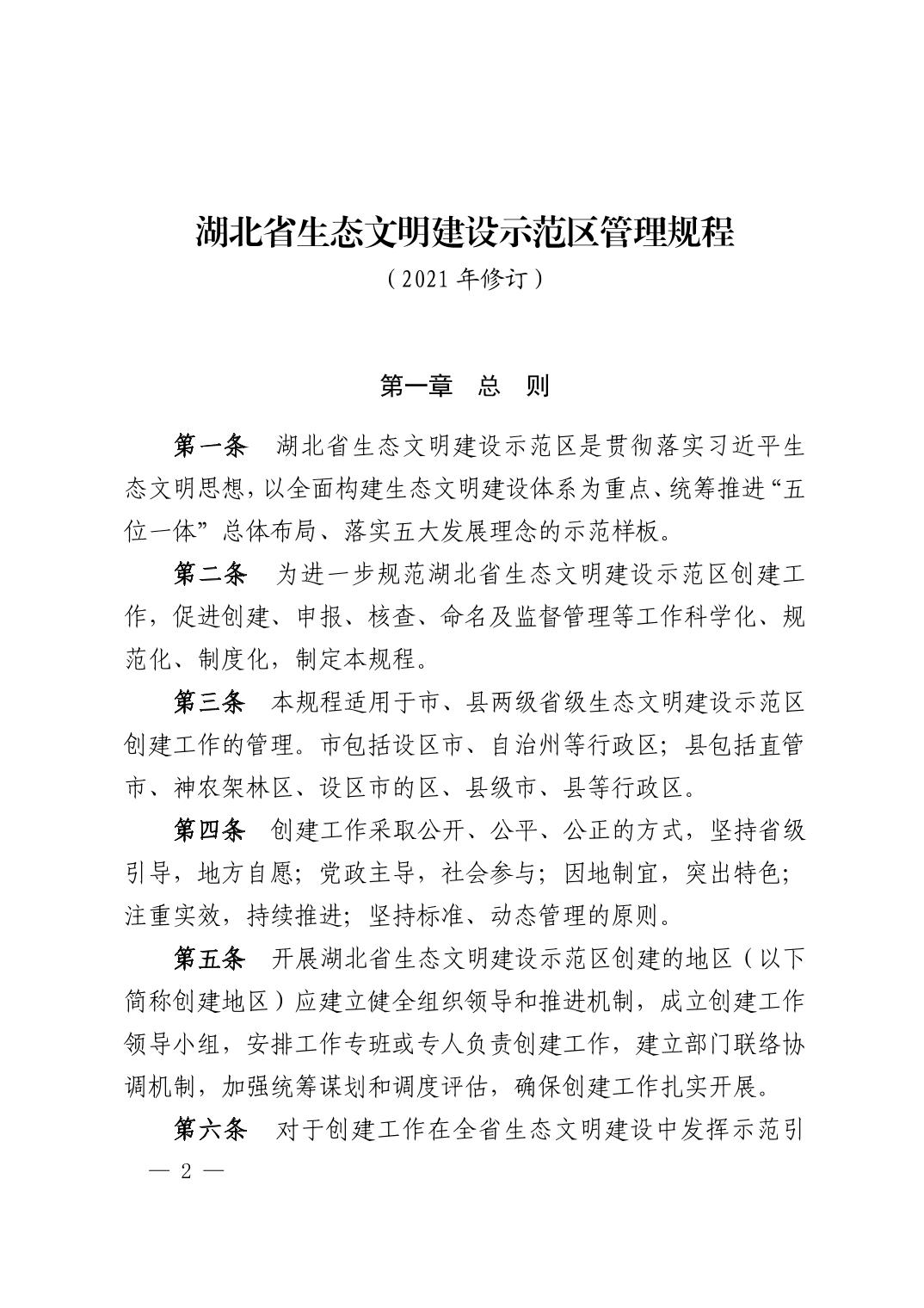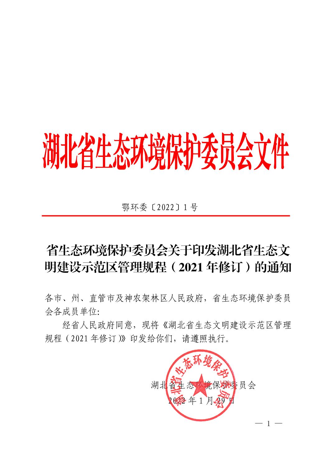 省生态环境保护委员会关于印发湖北省生态文明建设示范区管理规程(2021年修订)的通知)