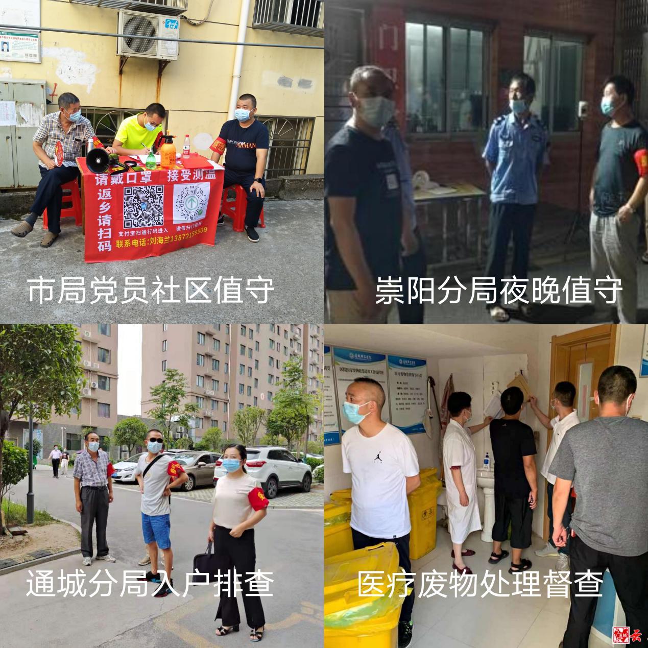 8月8日市生态环境局党组书记、局长熊峰,副局长黄佐财分赴温泉社区3个值守点督查,检查值守情况,详细指导值守人员严密防控。各县市区分局按照市局部署统一行动,积极投身疫情防控一线。崇阳县分局党组带领43名党员干部下沉到社区组织居民开展核酸检测,顺利完成社区450余户1600余人的核酸检测。通城县分局14名党员干部下沉到村和社区,服从当地党组织统一调度,开展疫情宣传和返乡人员排查,充实了一线防控力量,目前各项工作在有条不紊推进中。